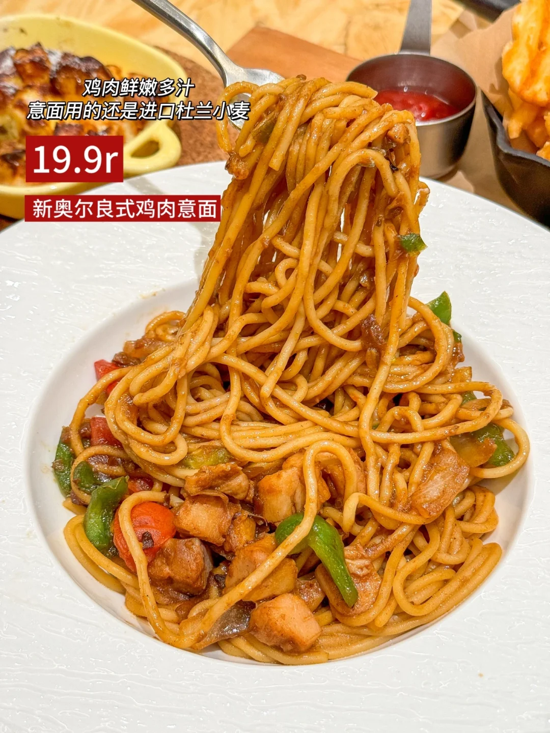 🍝新奥尔良式鸡肉意面也只要19.9元!😋新奥尔良独特的香料风味,让每一根意面都裹满了酱汁,搭配鲜嫩多汁的鸡肉,每一口都肉香四溢!🤩