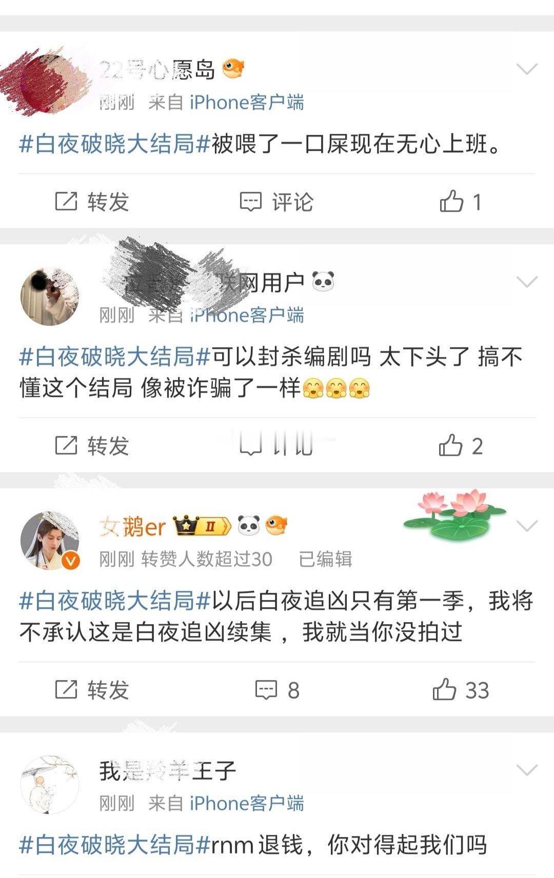 粉丝们都忍受不了这样的结局,认为还不如不要拍续集,有的甚至为此无心上班,纷纷表示对编剧的不满,很多人要求平台退费。