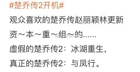 楚乔传2开机,这个话题看得我one愣one愣的,记忆中《楚乔传2》不是都播了吗,点进热搜才知道,我记忆中的《楚乔传2》其实是《与凤行》,而如今是真的《楚乔传2》开机,延续了第一部的剧情,但是主演都换了,那我还是继续当《与凤行》是《楚乔传》第二部吧