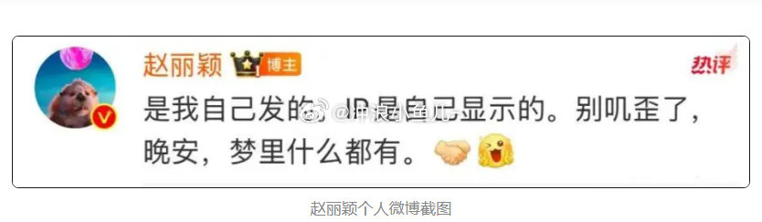 赵丽颖回应粉丝不满,直言别叽歪引发争议,随后她在评论区澄清:是我自己发的,晚安梦里什么都有。