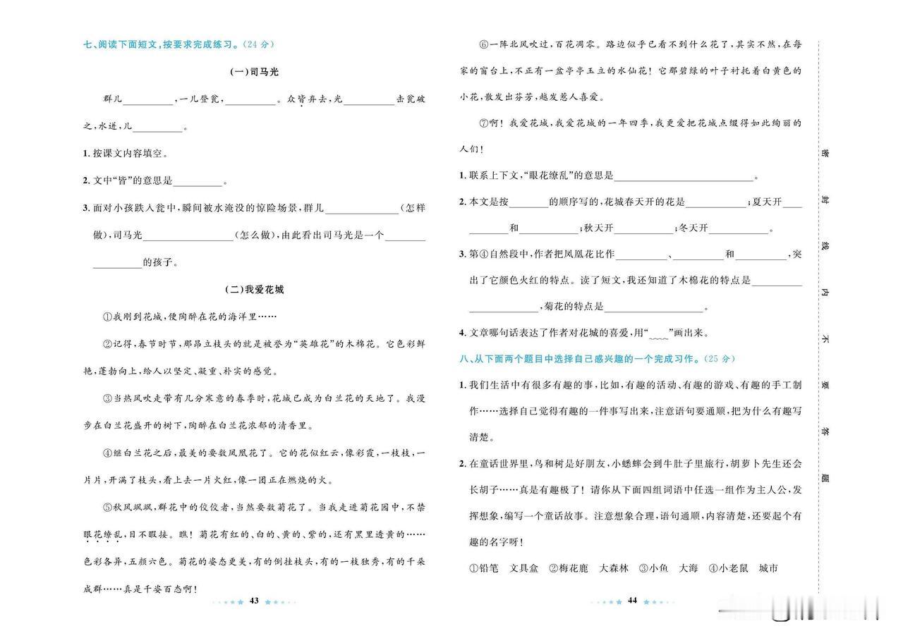 2024秋统编版语文三年级上册期末真题测试卷(一)
