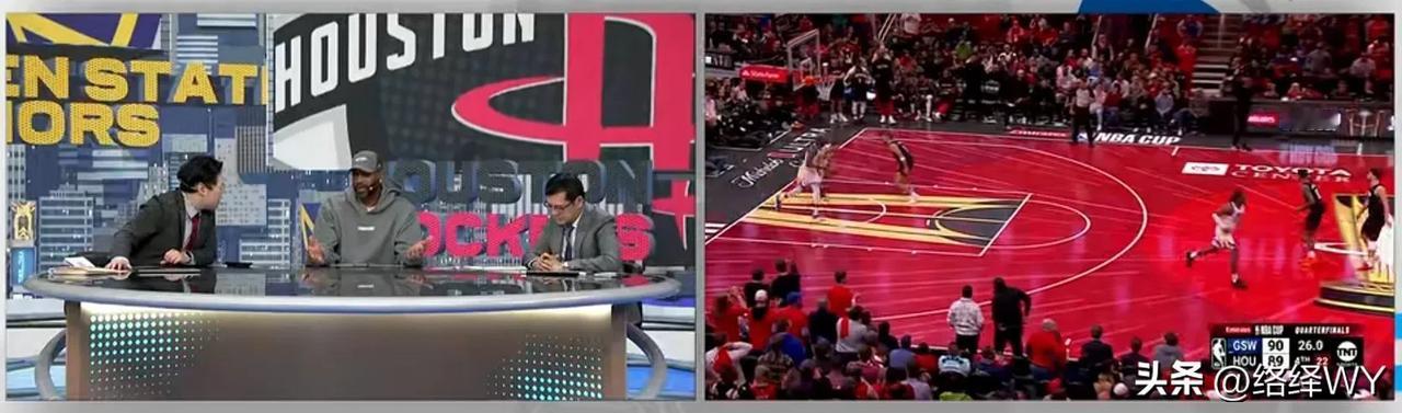 又见麦迪。 火箭与勇士的晋级大战,麦迪亮相腾讯演播室,一晃眼麦迪离开赛场已经很多年,不过,他留下的麦迪时刻却被人津津乐道,每次火箭队比赛的最后时刻,大家都在期待麦迪时刻,可以说麦迪时刻已经是红色火箭的印记。 20年前,麦迪第一次来到休斯顿,首个赛季他就让大家记住了他,在与马刺比赛的夜晚,主场作战的火箭最后时刻大比分落后马刺,就在所有人都已经放弃了比赛,观众席已经空了大半,而作为主角的麦迪没有放弃,比赛的最后35秒他犹如天神下凡,个人独得13分逆转了比分,率领火箭取得胜利,麦迪时刻成为永恒的经典。 这一次,麦迪将他的好运带给了杰伦格林,比赛最后时刻,库里三分不进,格林抢到篮板球,他用两罚两中率领火箭91-90战胜勇士,结束了对对手的15连败,也将火箭送入杯赛4强,而火箭也再次排名西部第二。