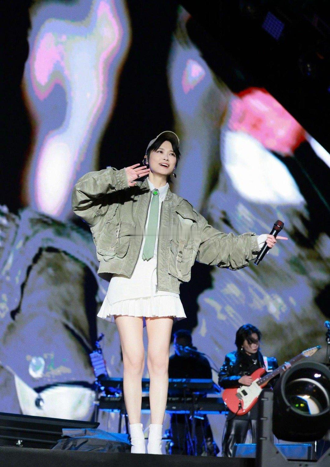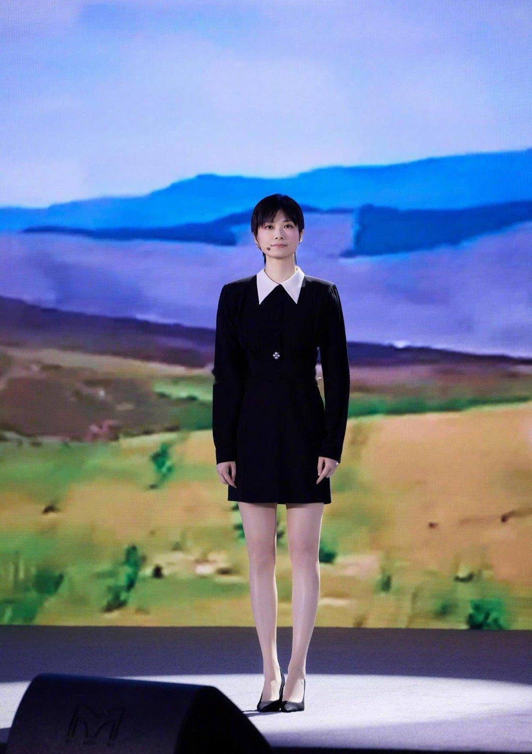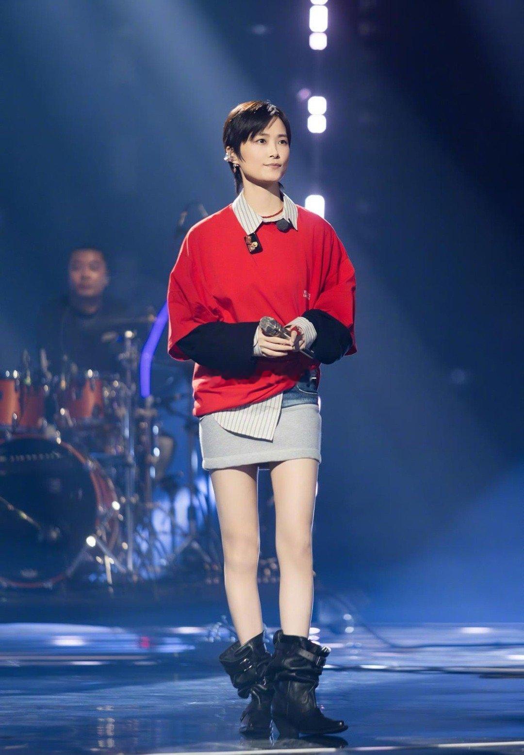 走中性风的李宇春现在变得好女人,现在都快成裙子大户了,一双大美腿尽显无余。