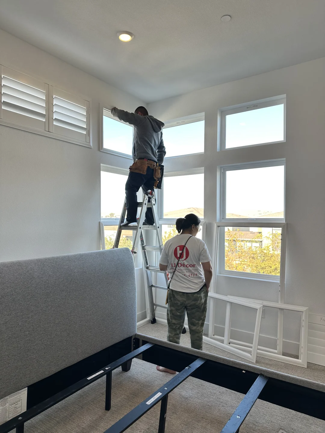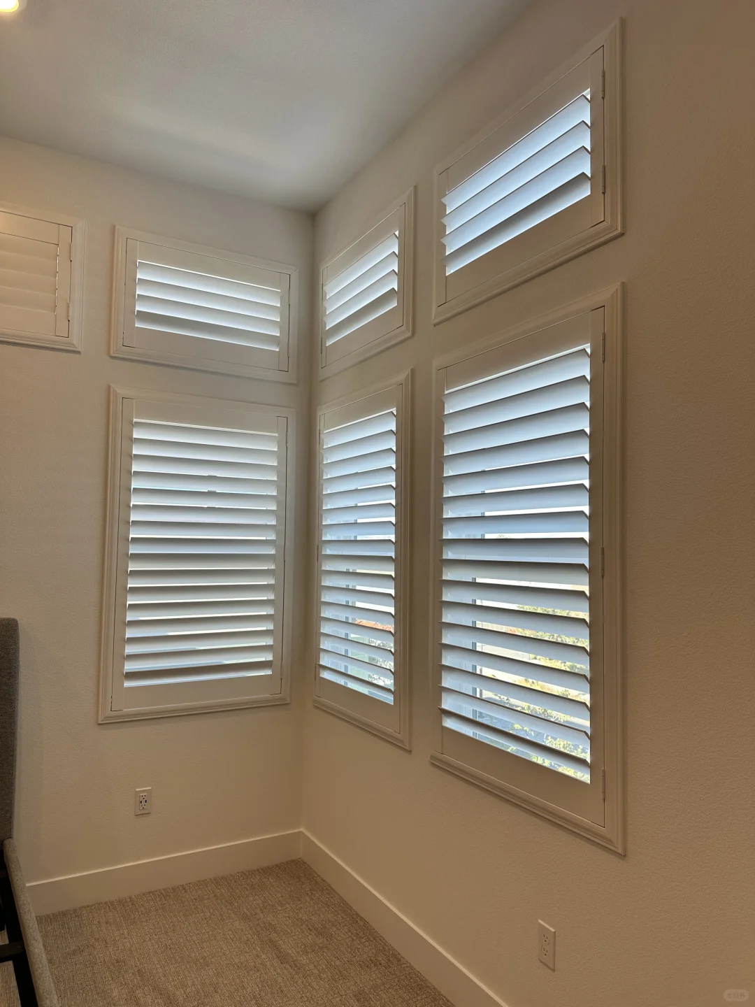 当然是shutter啦,床头上方的小窗装shutter真的是最优解,又好看又能遮光。