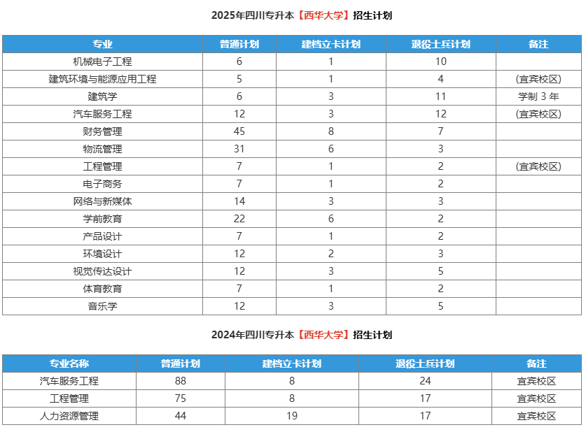 西华大学专升本招生计划(2025 年参考)