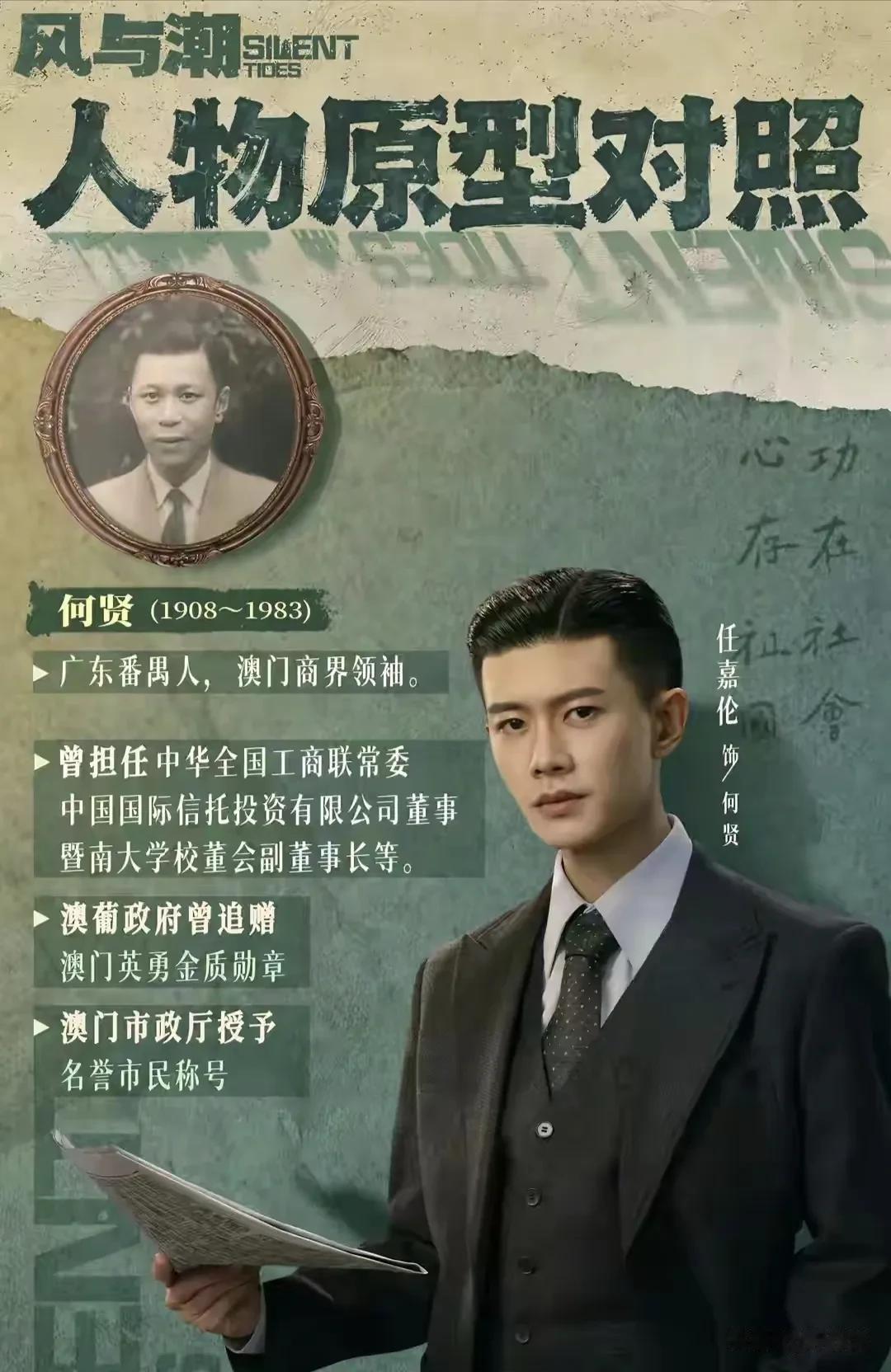 是的,由任嘉伦领衔主演的《风与潮》刚迎来收官,他在剧中饰演的正是何贤一角。