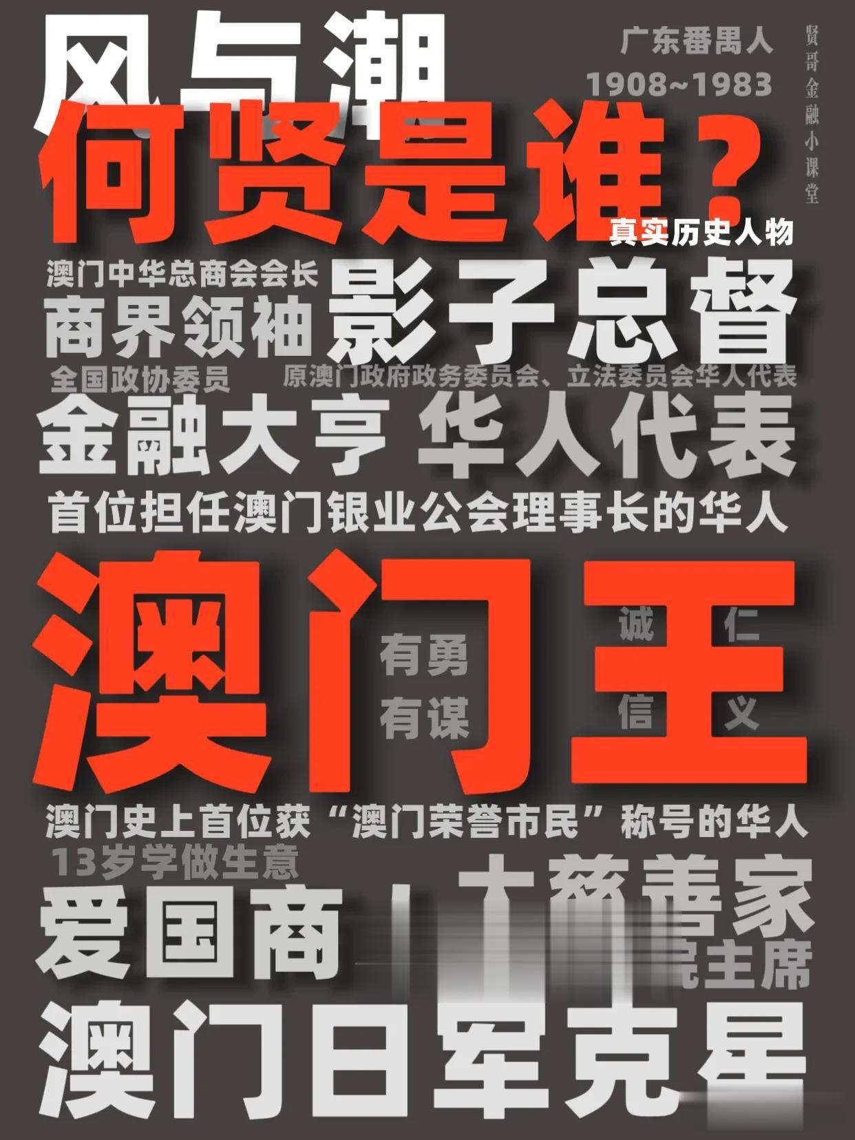 电视剧《风与潮》,便是根据何贤的真实事迹改编,讲述何贤如何从一个难民逆袭成澳门的话事人。