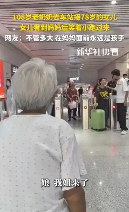 "妈!"78岁的李阿姨刚出阜阳火车站,就被一道苍老却清脆的呼唤惊到了——108岁的老母亲正拄着拐杖,在人群中上演"反向接送"。这画面让在场的大爷大妈们集体破防:原来母爱永动机真的存在!
