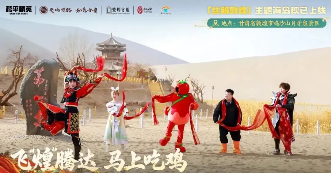 1月27日《和平精英》上线丝路敦煌主题海岛后,游戏与甘肃省文化和旅游厅、敦煌文旅集团的线下联动迅速拉开序幕,围绕鸣沙山月牙泉风景区、敦煌沙洲夜市等线下景点展开共创式联动,通过祈福挑战、灯会、壁画等跨次元文化叙事,完成了游戏与历史名城的双向赋能。