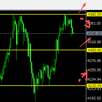 2、处在4380下方,再次调整,先是看到4300的关口。关注此位置支撑反弹,上方继续调整,以及挑战4380的位置。