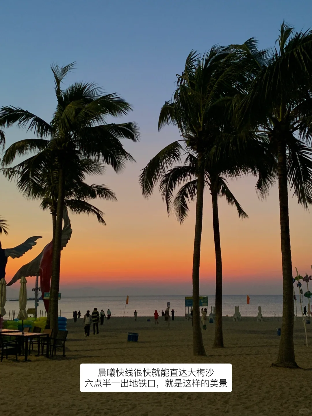 ▪️深圳周末有晨曦特快,我们起床后打车到大剧院站,六点左右出发,大概六点半就能到大梅沙海滩,方便得很!