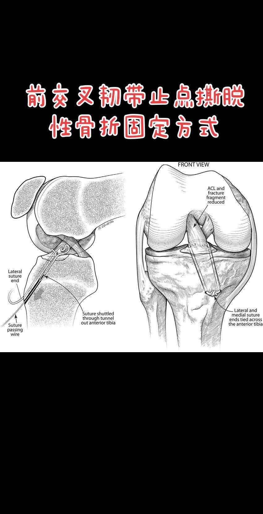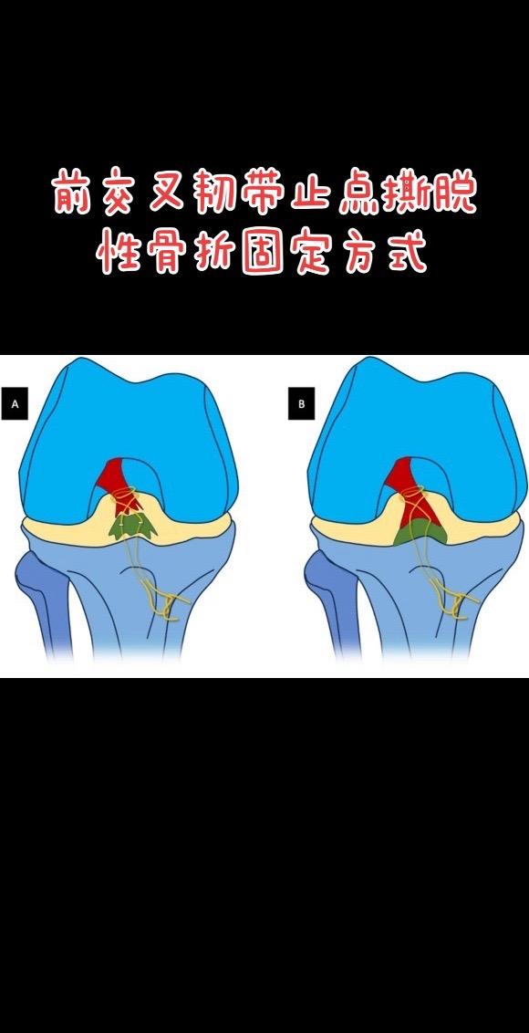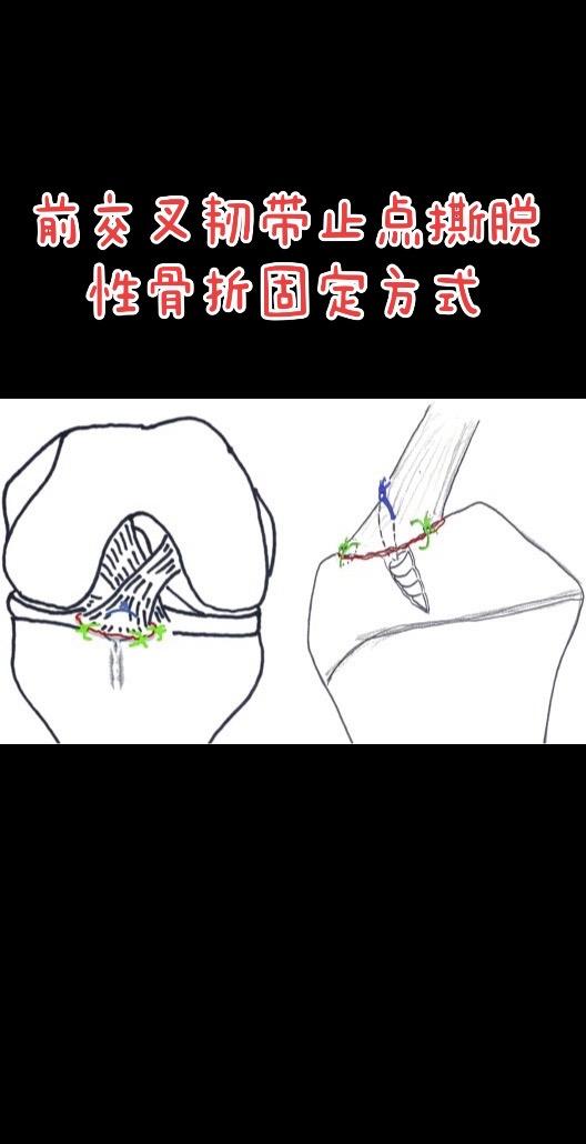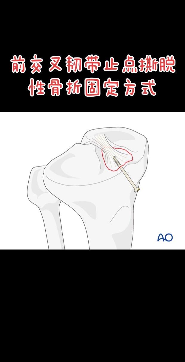 前交叉韧带止点撕脱性骨折。固定方式