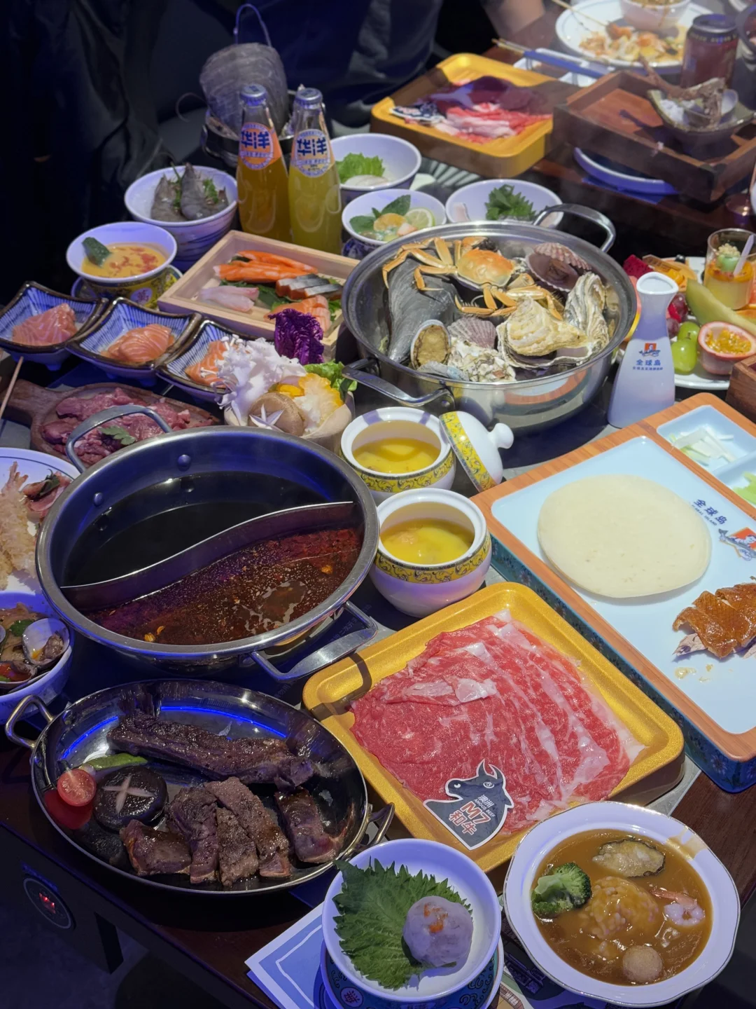 环宇城ZUI近新开的这家海鲜自助特别火!听说价格才200左右↔️开始我还很不屑🫤这么便宜能吃到啥!!来了才发觉自己大错特错!这里能吃的太多太多了!性价比真的是没谁了🥹 5000平的餐厅,可以畅吃300多种美食!每桌还配有鸳鸯火锅和蒸汽海鲜锅,吃法也是特别多👍🏻 取餐区域逛一圈,简直眼花缭乱😱各种新鲜海鲜🦞厚切的三文鱼刺身、战斧牛排、炉端烧烤大虾、佛跳墙、M7和牛、鲜切牛肉…还有各种冷热菜、中西餐、火锅涮菜、饮料、甜品、冰淇淋…应有尽有!我一个女生都妥妥吃回本啊!jue对入股不亏啊!