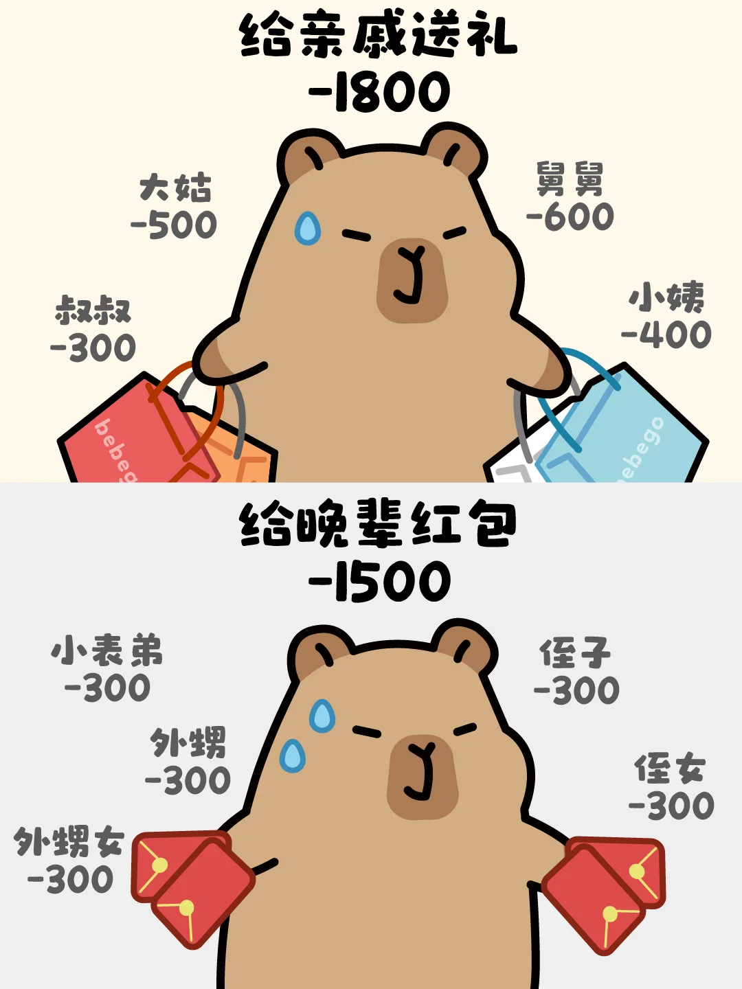 时光之外? 2 2025-01-21 19:39 我还没回,我妈就打电话问我过年能不能拿三万出来,说去年家里开销好大我说我能拿一万五,我妈就开始说我存不下钱,花钱肯定大手大脚吧啦吧啦之类的,我直接挂了电话,刚好不回去了。