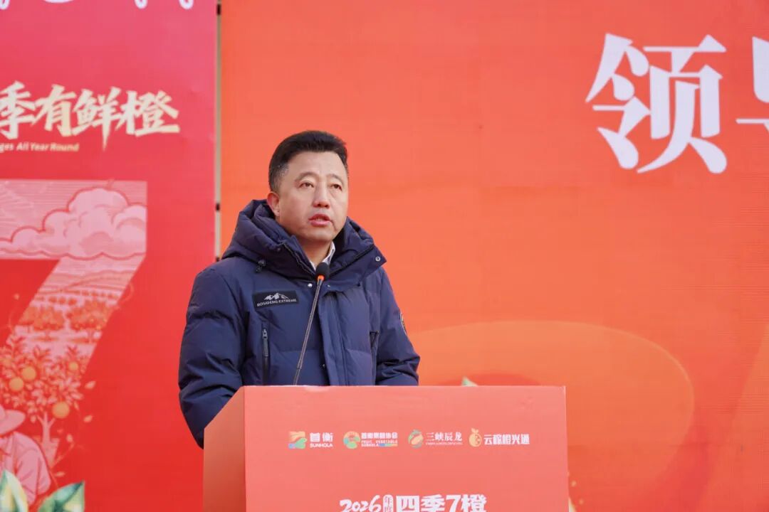 随后,首衡集团董事长米亚林在致辞中表示,首衡集团作为覆盖全国2000多个县、链接600多万亩基地的农产品流通枢纽,始终致力于构建高效、协同的供应链网络。“四季7橙”坚持品质与模式创新的发展路径,与首衡的理念高度契合。未来,首衡将充分发挥其在冷链物流、销售渠道与市场渗透方面的系统能力,为品牌提供从仓储保鲜、渠道对接、到终端覆盖的全链条支撑,助力其快速成长为北方市场具有影响力的脐橙品牌。