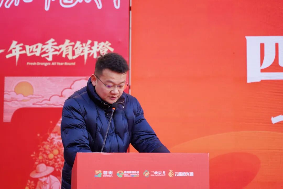 在产品推介环节,辰云泰(北京)农业有限公司副总经理、云稼橙心通(宜昌)有限公司董事长赵武详细解读了“日光集”系列五大产品线,包括面向团批渠道的30斤纸塑筐、主打家庭消费的13斤装、适用于礼品场景的精品礼盒等,精准匹配不同渠道与客群需求。