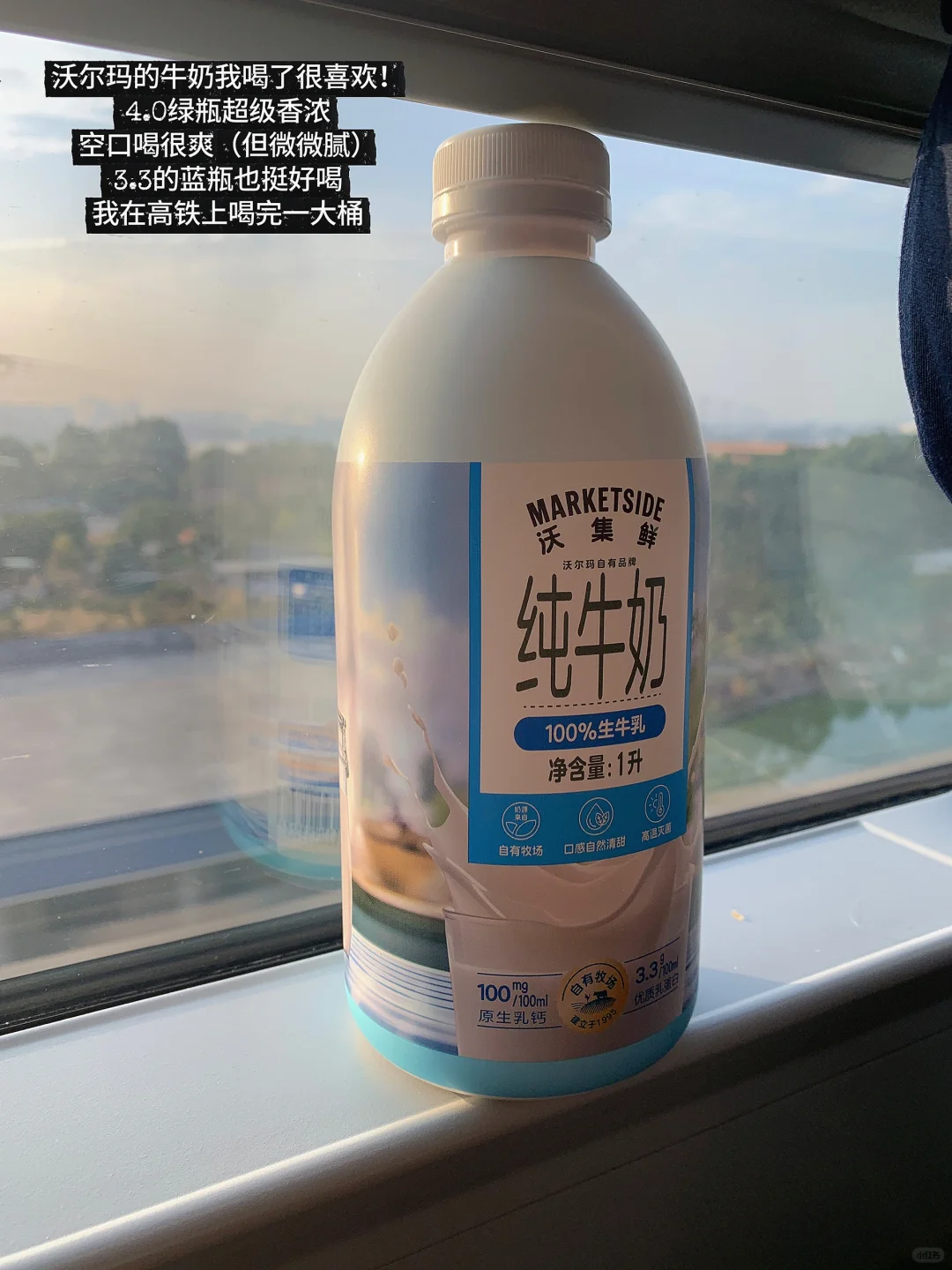 ▪️沃尔玛的牛奶太太太喜欢了!不到十块钱一大瓶,绿瓶像在喝清爽版的奶油🥛,很厚很浓郁,我喝着有点像低糖加浓的旺仔,蓝瓶虽然有点普通,但7.9的性价比太高了!