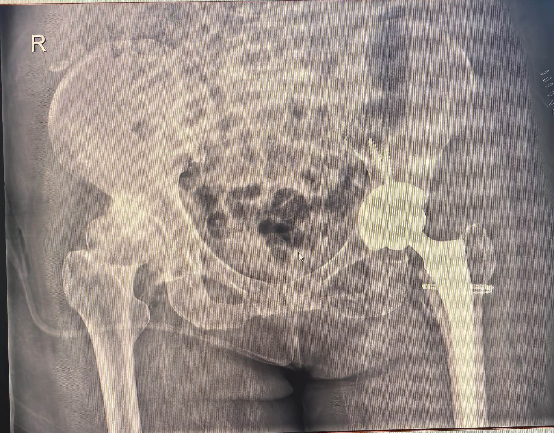 DDH,髋关节置换,髋关节发育不良。DDH髋关节置换,术前备的垫块,术中适当增加臼杯磋磨深度后包容性>80%,所以就没再放垫块,以最少的花费和最小的损伤让病人“髋”心🌹