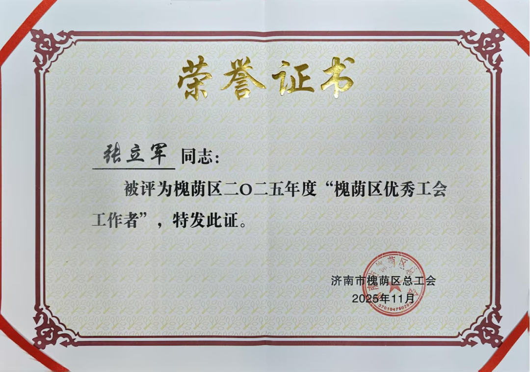 近日,济南市槐荫区总工会公布槐荫区职工之家争先创优竞赛获奖名单。世纪金榜张立军同志荣获“槐荫区优秀工会工作者”称号。