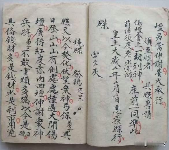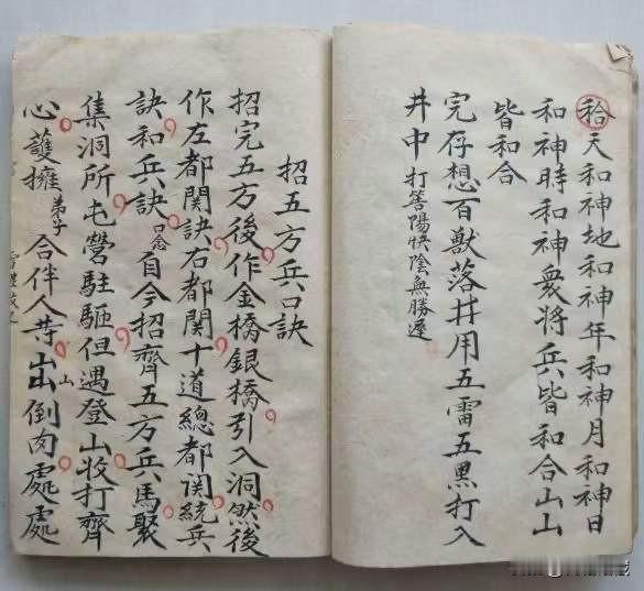 《梅山猎神张五郎秘本》内有讲请猎神科文,関山符形,招五方兵口诀,赖公咒,杨公咒,趙公咒,五伤咒,三洞大王咒,雷神咒,安香火牒格,收捉邪鬼等,57筒子页。