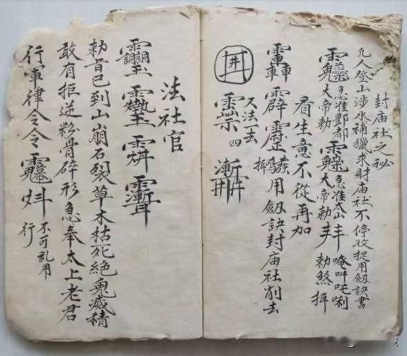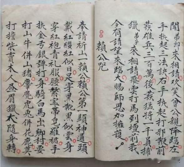 《梅山猎神张五郎秘本》内有讲请猎神科文,関山符形,招五方兵口诀,赖公咒,杨公咒,