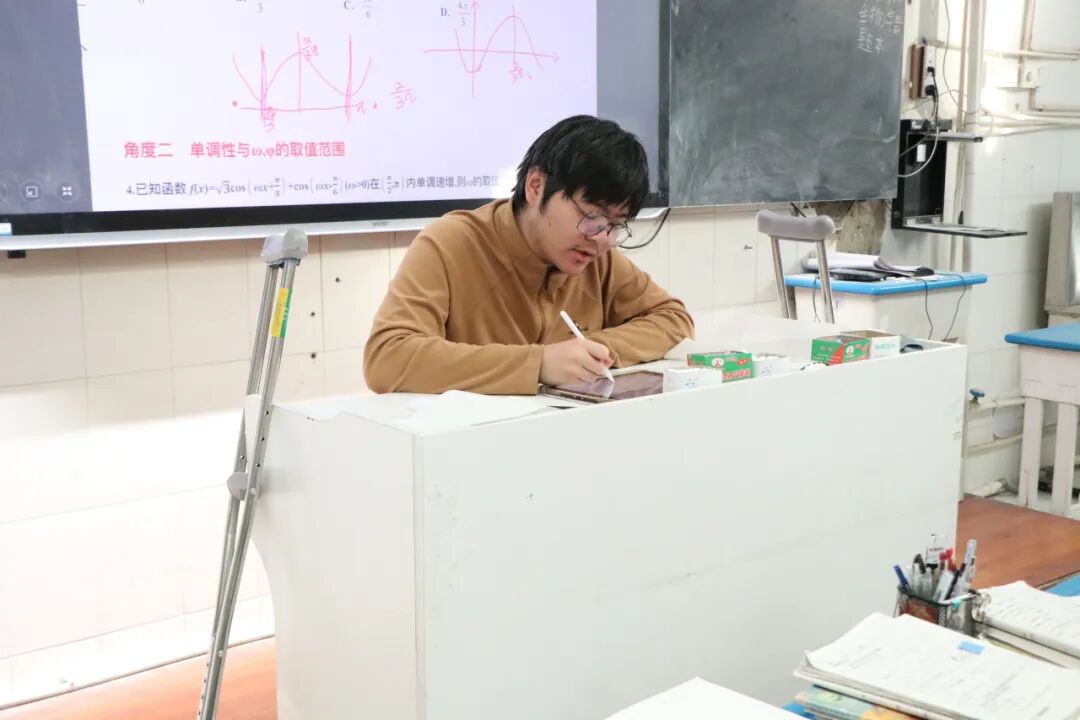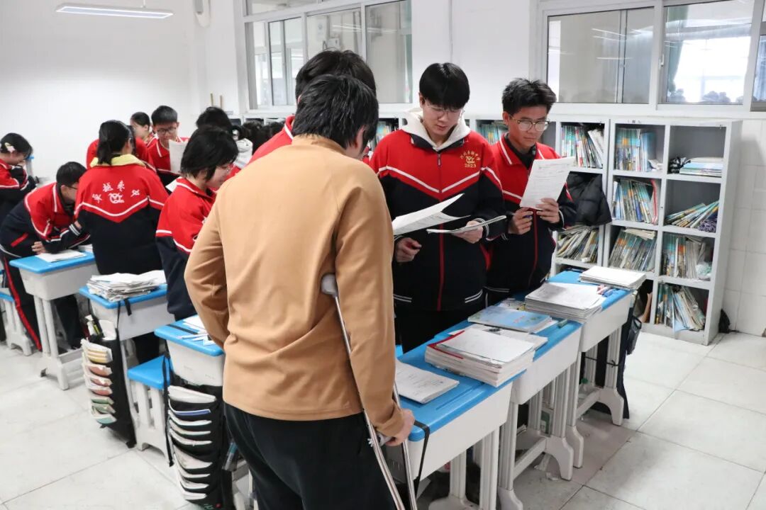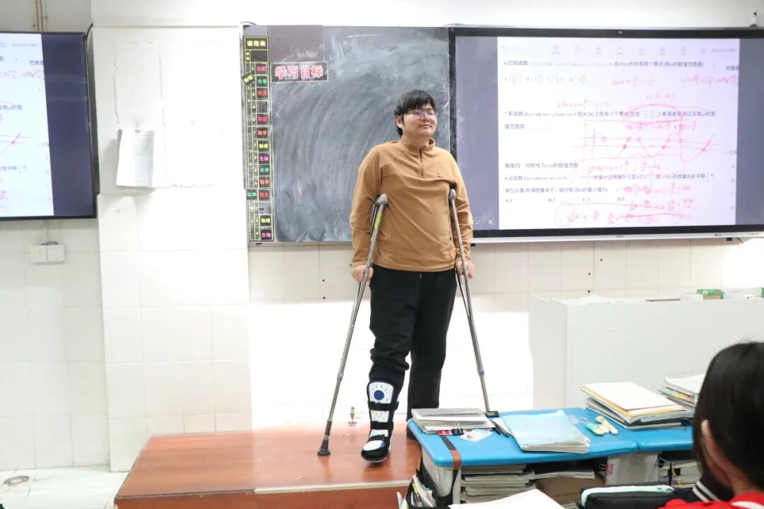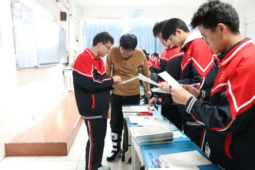师者用心,生者用力。在石宏义老师的带领下,13班的成绩始终在年级名列前茅。这份优异的成绩,不仅是学生们努力拼搏的成果,更是石老师用爱与责任浇灌出的硕果。他用拄拐的身影告诉学生:“人生没有过不去的难关,唯有坚守与奋斗方能不负韶华”!