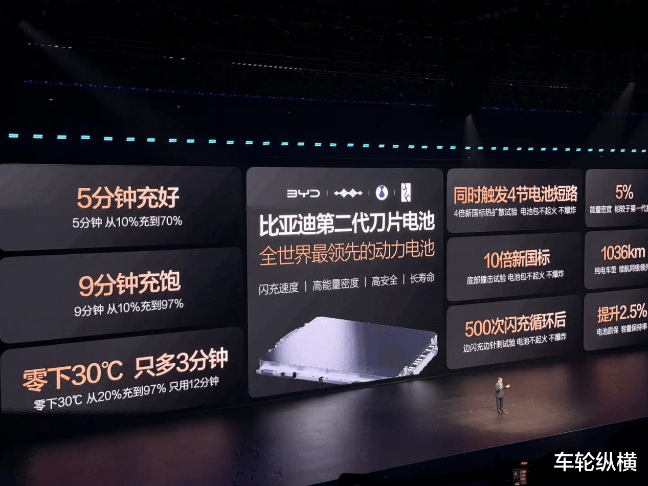 深圳大运中心体育馆,比亚迪董事长王传福站在台上,说出了那句掷地有声的话:“没有人比我们更懂电池。”这一天,比亚迪正式发布了第二代刀片电池及闪充技术,用一组惊人的数据震动了整个新能源汽车行业:5分钟充至70%,9分钟充至97%,零下30摄氏度也只比常温多3分钟。