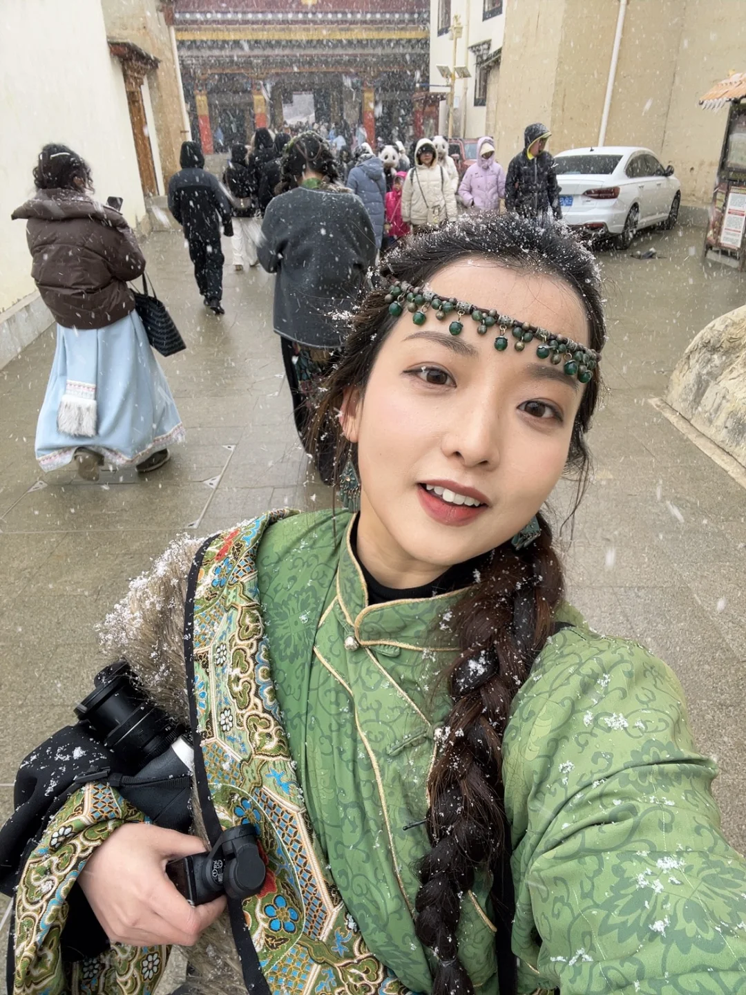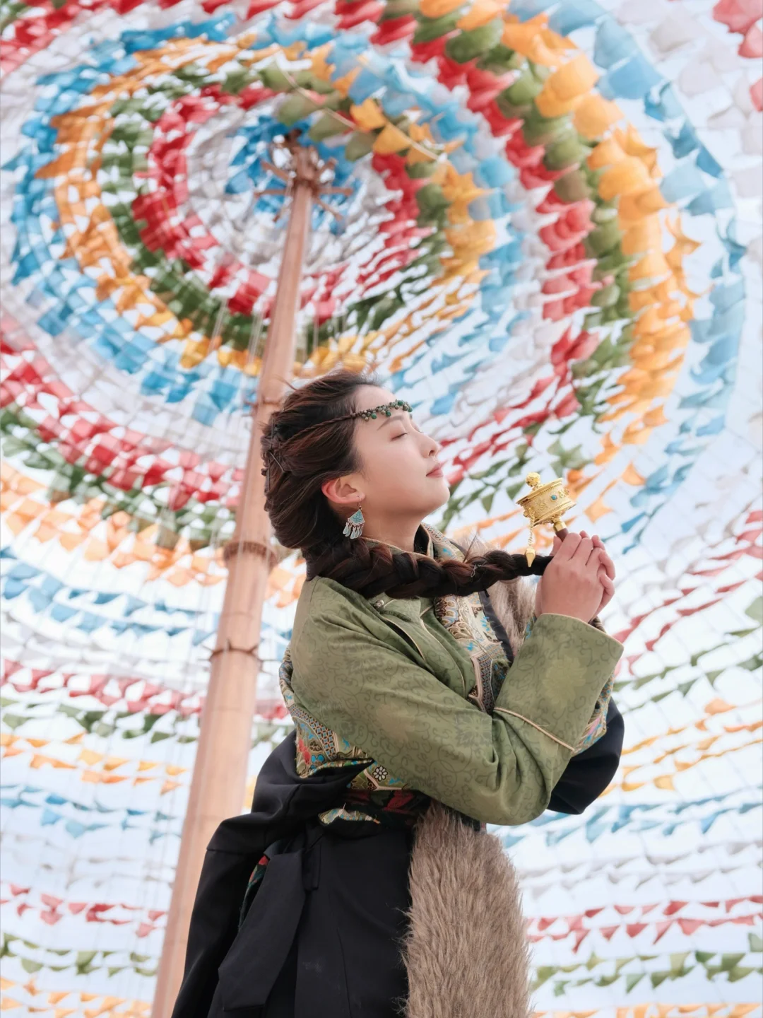 Day1️⃣:租藏服,路边随便盲选了一家店,现在香格里拉做妆造➕衣服也就七八十,我是自己化得妆就没有特别去筛选店铺。弄好妆造后直接打车出发📍大经幡,大概离古城十分钟左右,门票🎫9r。