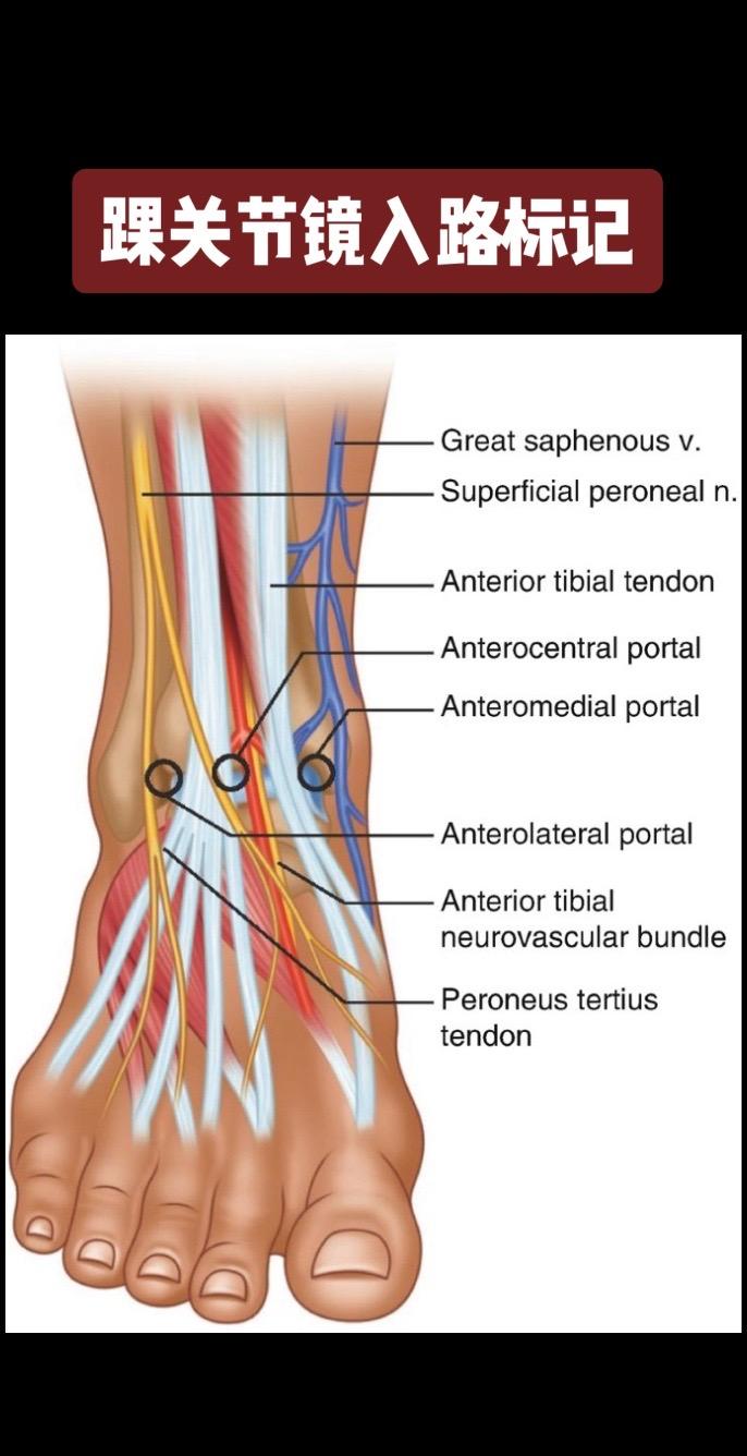 踝关节镜入路标记。踝关节镜的‘秘密通道’!🔍 这些标记点get了吗?
