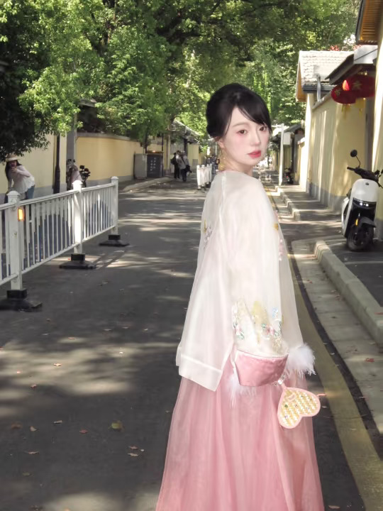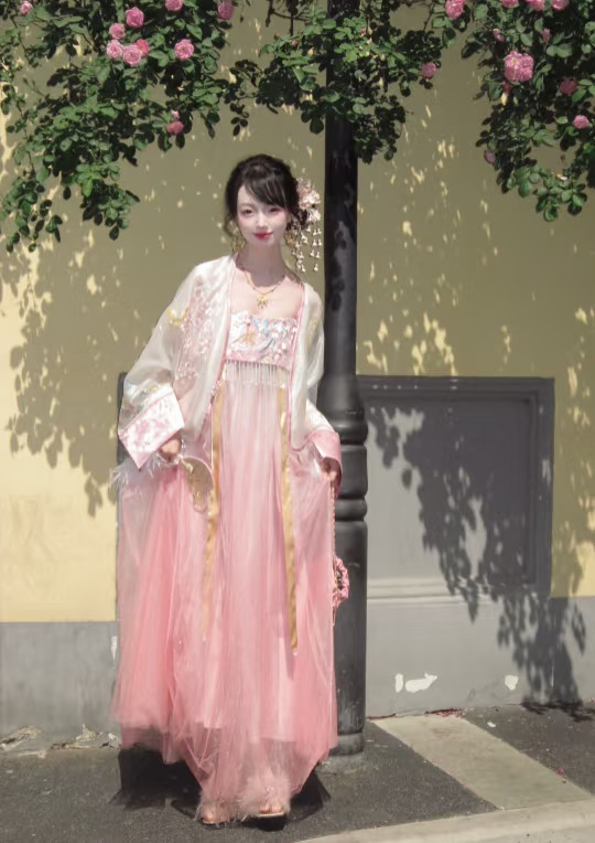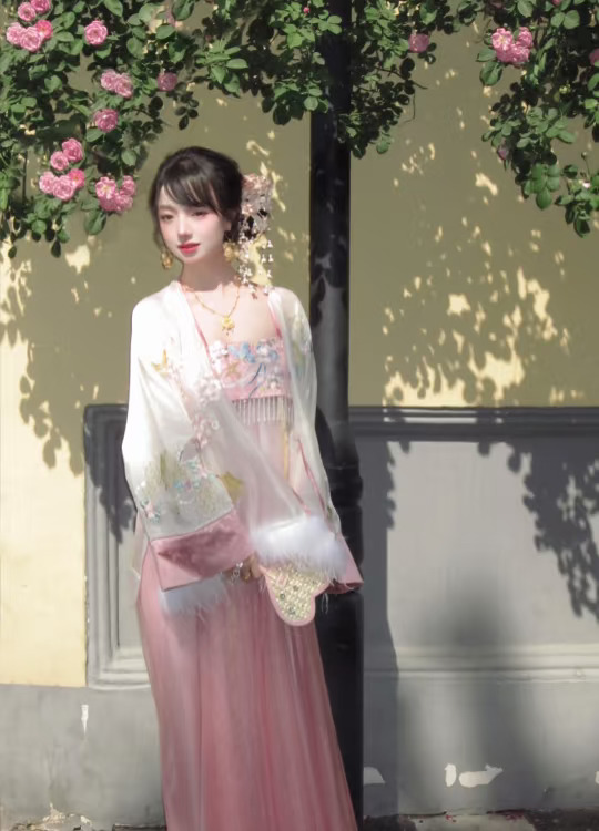 颐和路上的蔷薇花开满了墙头, 在这春夏之交的浪漫午后, 当然要穿上粉粉嘟汉服啦~