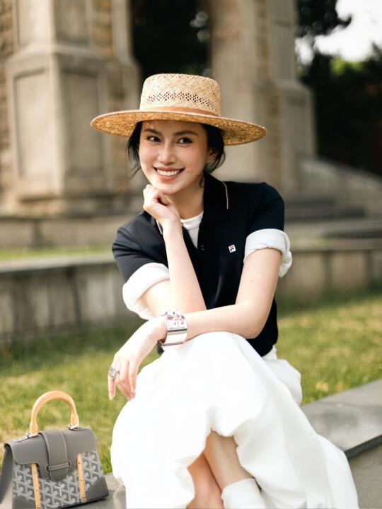 阳光治愈魔法又又又生效啦! 怎么有人一晒太阳就傻乐呢~hhh~ 让我们热烈庆祝夏天的到来! 👏 期待即将到来的五一假期提前放假咯! 已经准备好要无所事事的坐在公园的椅子 或者大树旁上被阳光晒个透了~🌞 今天穿了我很爱很爱的“小空调”FILA菁英polo 肤感超好而且很不易皱 好适合我这种又要追求质感又不想熨衣服的懒人~ 搭配了一套蓝白色系的航海度假风穿搭 提前感受五一的度假氛围~ 📸新发现的宝藏公园太出片 树荫下随手拍都自带松弛贵气感