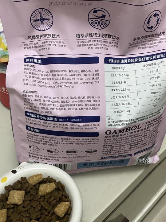 而且还采用了自己研发的气爆技术,之前根本不懂什么叫气爆技术,问了客服小姐姐才知道,气爆技术原来能让粮里这些食材的营养更好的吸收到肠胃里,减轻肠胃的负担~这点对于玻璃胃小狗真的太加分了👍