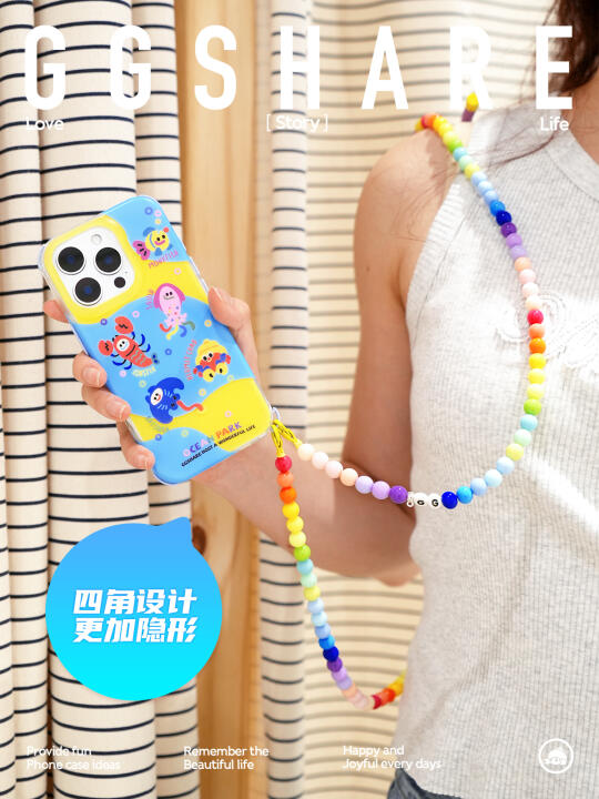 准备上新啦~ 水族馆壳壳是有四角的隐藏挂扣设计的, 平时不用挂口可以压回去,而且增加了边角防摔保护 多巴胺色系的珠珠挂绳可以配自由搭配, 有长有短,挂哪个口都方便[蹲后续H]