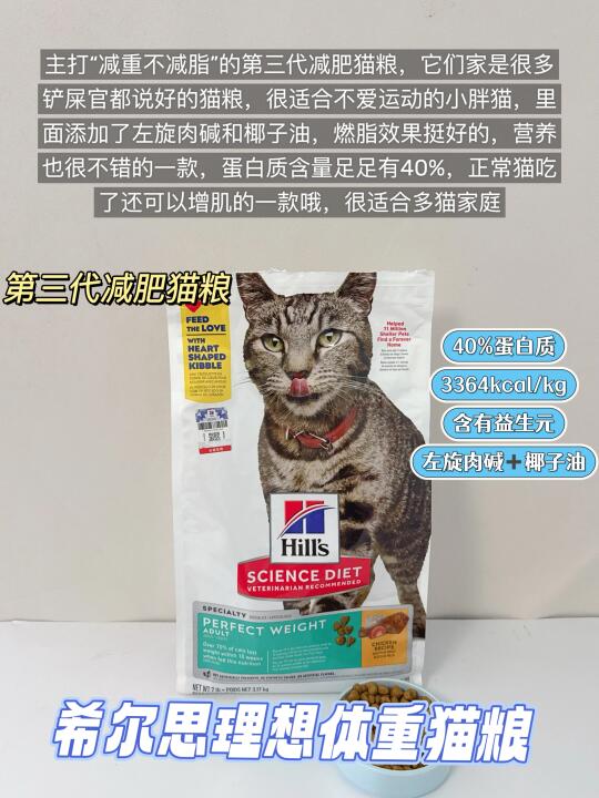 猫粮品牌越来越多对养猫人来说是有好处的,但是对我这种选择困难症来说真的很纠结,光是减肥猫粮我们家就没少买,今天分享一下,我家吃过的减肥猫粮~ ✅ 希尔思理想体重猫粮 主打“减重不减脂”的第三代减肥猫粮,它们家是很多铲屎官都说好的猫粮,很适合不爱运动的小胖猫,里面添加了左旋肉碱和椰子油,燃脂效果挺好的,营养也很不错的一款,蛋白质含量足足有40%,正常猫吃了还可以增肌的一款哦,很适合多猫家庭 ✅ 百利理想体态猫粮 也算是百利家的经典款猫粮了,是添加了冻干的减肥猫粮,适口性很不错,我们家猫就很喜欢吃它里面的冻干,而且原材料也都是很好的鸡肉肉源,脂肪含量不高,很适合需要控制体重的猫咪吃 ✅ 自然光环健美体态猫粮 我买的这个是它家的健美体态款的猫粮,里面添加了左旋肉碱,对想保持体重的猫咪来说是很不错的一款而且里面还添加了菊粉,可以调节猫咪的肠胃 ✅ 爱肯拿室内猫低卡猫粮 我家吃的第一款进口猫粮,听说是跟渴望同厂的,品质挺不错的,38%的蛋白质成分,营养也是够的,可以满足猫咪日常所需,而且它虽然是一款减肥粮,但是它的含肉量足足有75%,不过好消化~不容易长胖喜欢吃肉的小胖猫可以试试看 ✅ 渴望低卡猫粮 进口粮里很不错的减肥猫粮,品控和品质都挺稳定的它的原料采用的是新鲜的鸡肉肉源,在蛋白质不减的基础上减少脂肪的含量,让猫咪吃了不容易胖,能够帮助猫咪健康减肥~