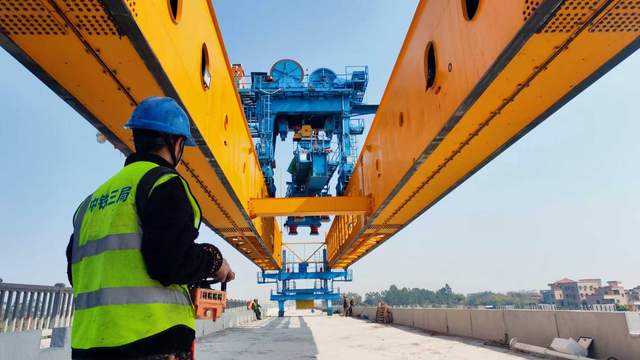 2月6日,广佛西环城际铁路全线最大孔跨大榄特大桥(40+48+40)米节段预制拼装连续刚构架设完成,标志着广佛西环三工区节段梁架设作业全部结束,为后续桥面系施工及铺轨作业奠定了坚实基础。