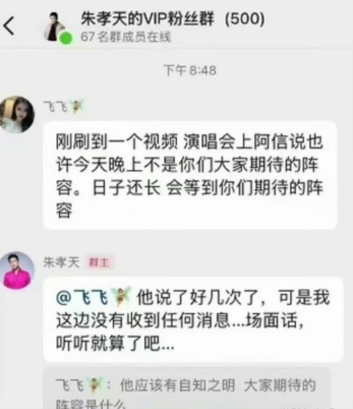 F4演唱会如期举行,朱孝天多张群聊内容也被曝光。