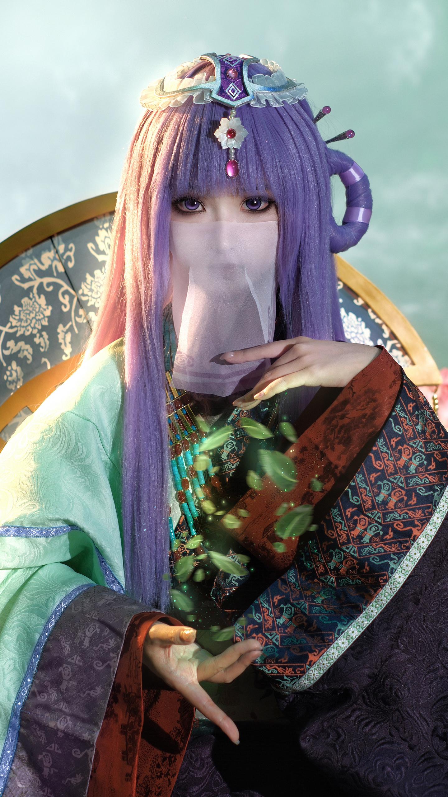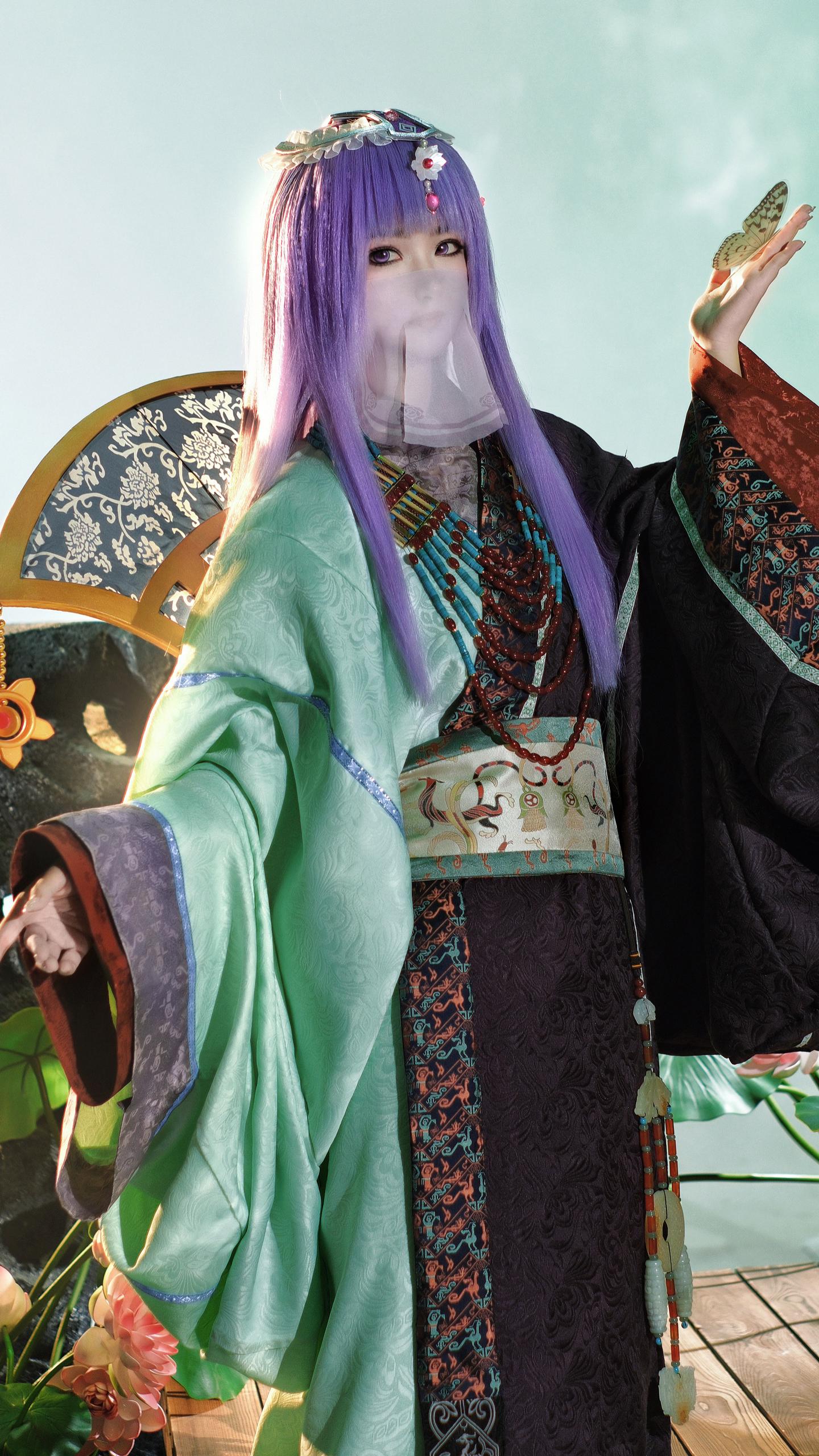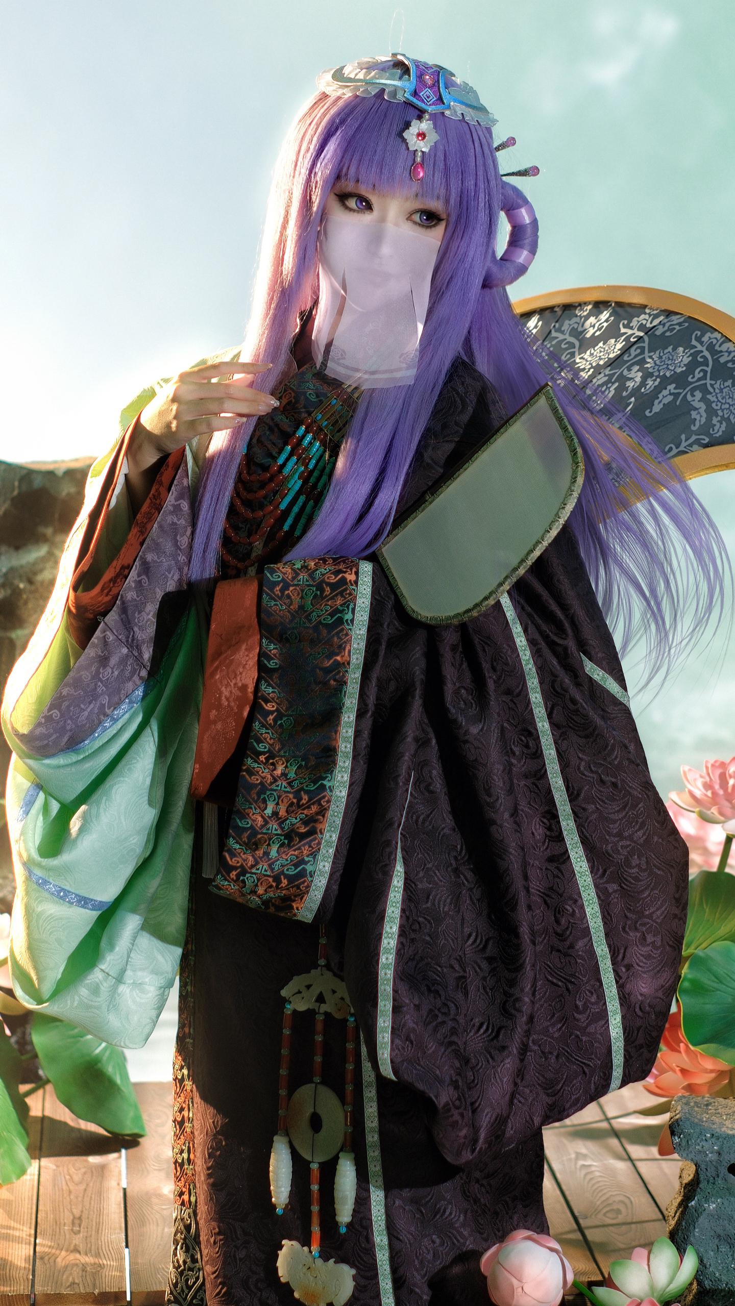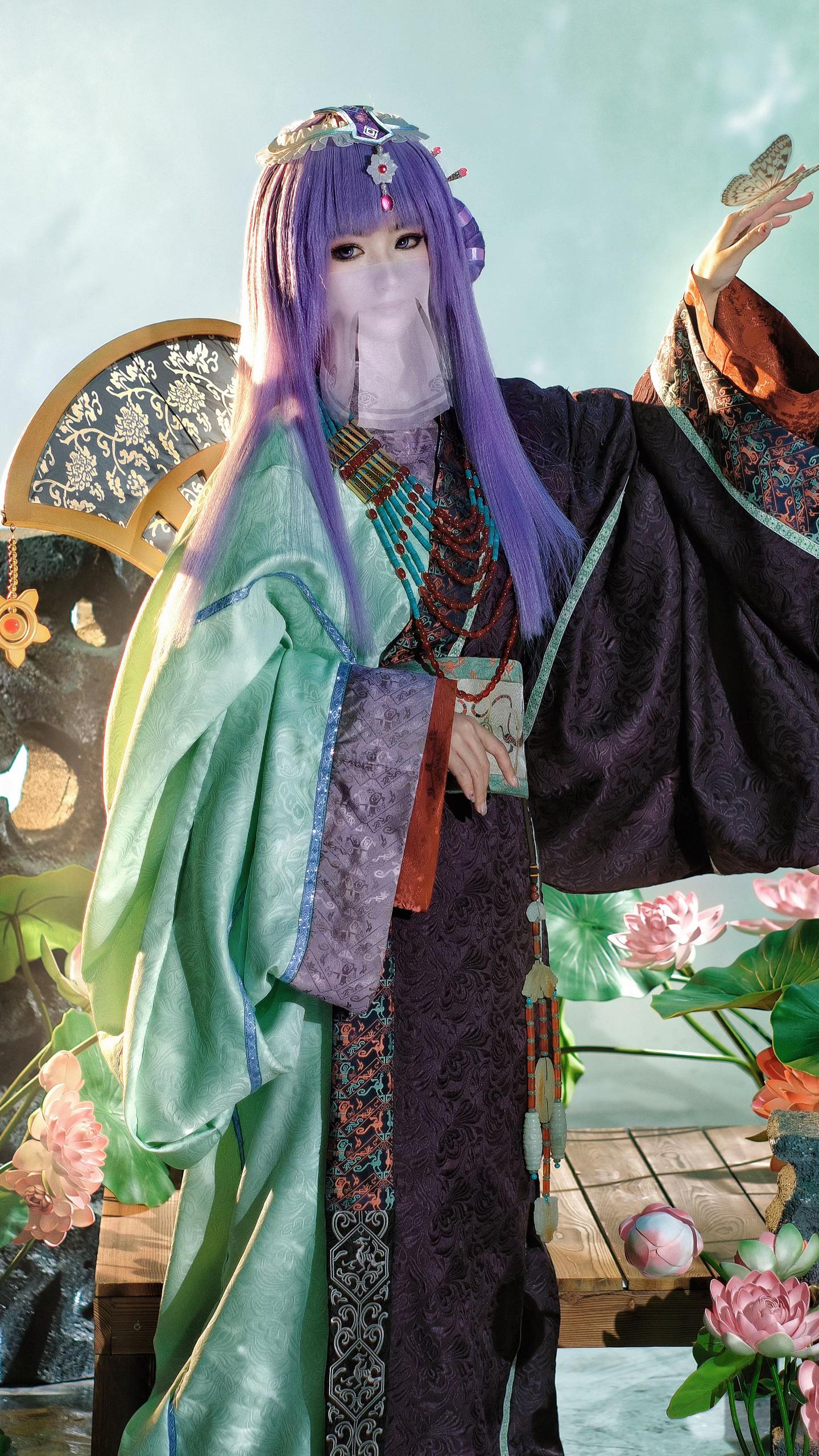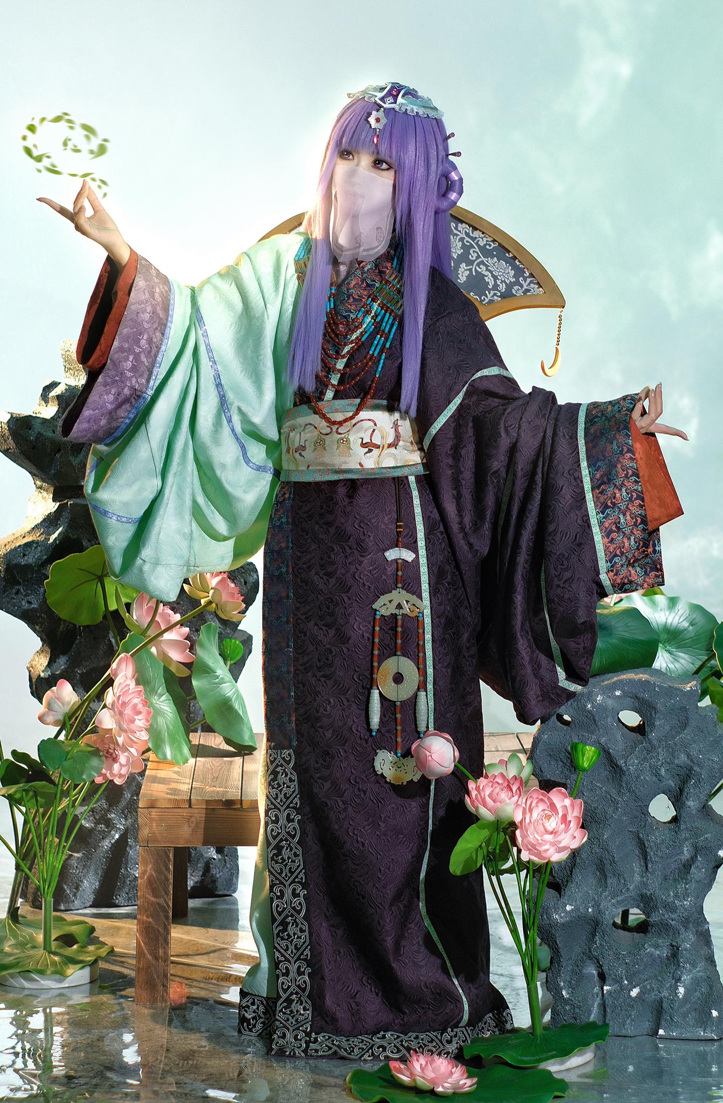 我为我童年女神少司命设计的战国袍私设。这套战国袍的设计灵感源于先秦时期楚国诗人屈原《楚辞》中的《九歌·少司命》篇:“秋兰兮麋芜,罗生兮堂下。绿叶兮素华,芳菲菲兮袭予。”这是楚人祭祀少司命神的乐歌 因此就有了想为她设计楚地礼服的想法。形制参考的是马山楚墓N19战国袍 但袖子放量几乎等同N15。因此虽是按照复原数据进行成衣制作 但并不算是严谨的复原战国袍。项链和玉佩是自搭复原款 项链原版来自战国时期马家塬M16绿松石玛瑙项链。