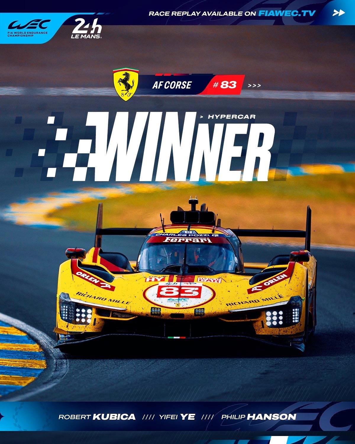 🇨🇳车手叶一飞拿到了第一个属于他的勒芒全场冠军🏆 创造历史 开轮式最顶级的赛事是F1 封闭轮最顶级的就是勒芒