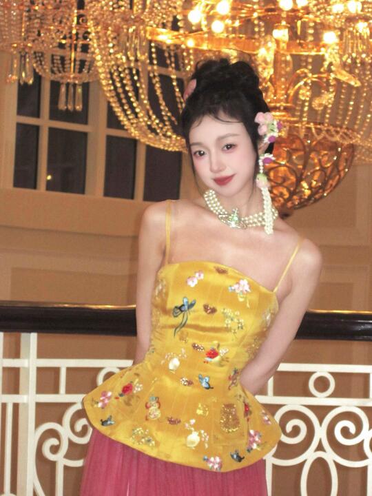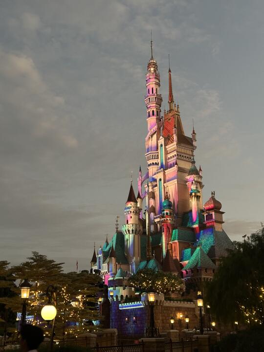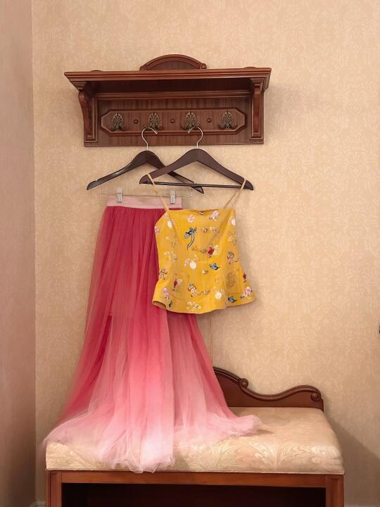 如愿住进了香港迪士尼酒店, 回公主的家当然要穿礼服裙啦, 大吊灯很出片,房间内衣帽间好童话~ 好看,下次还来!