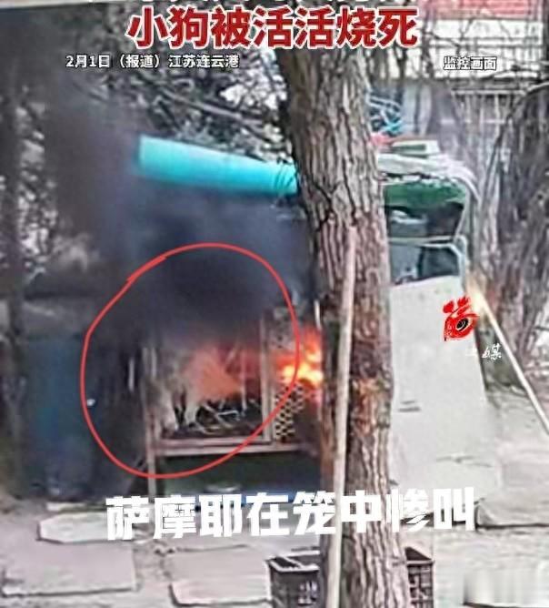 短短三分钟内,火势迅速蔓延,整个狗笼被烈火吞噬。视频中可以清晰听到狗狗凄厉的惨叫声,它在笼内无处可逃,最终被活活烧没,变成了一堆焦炭。