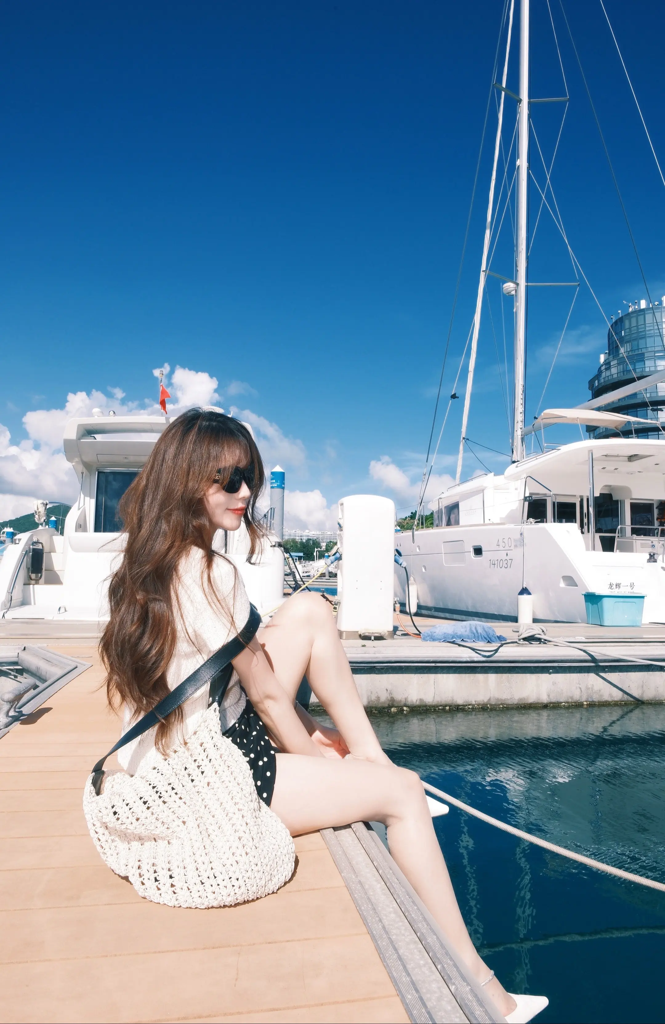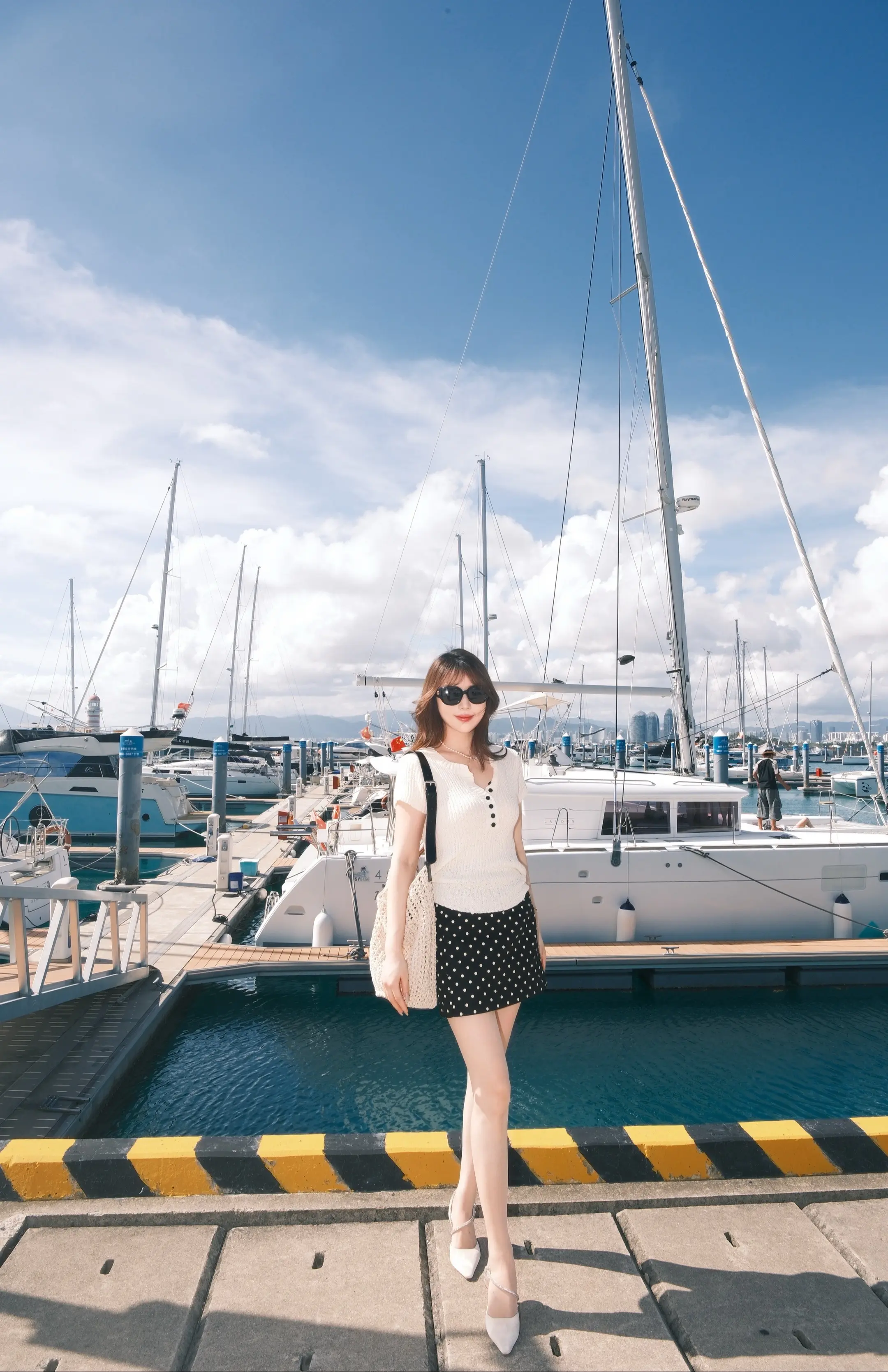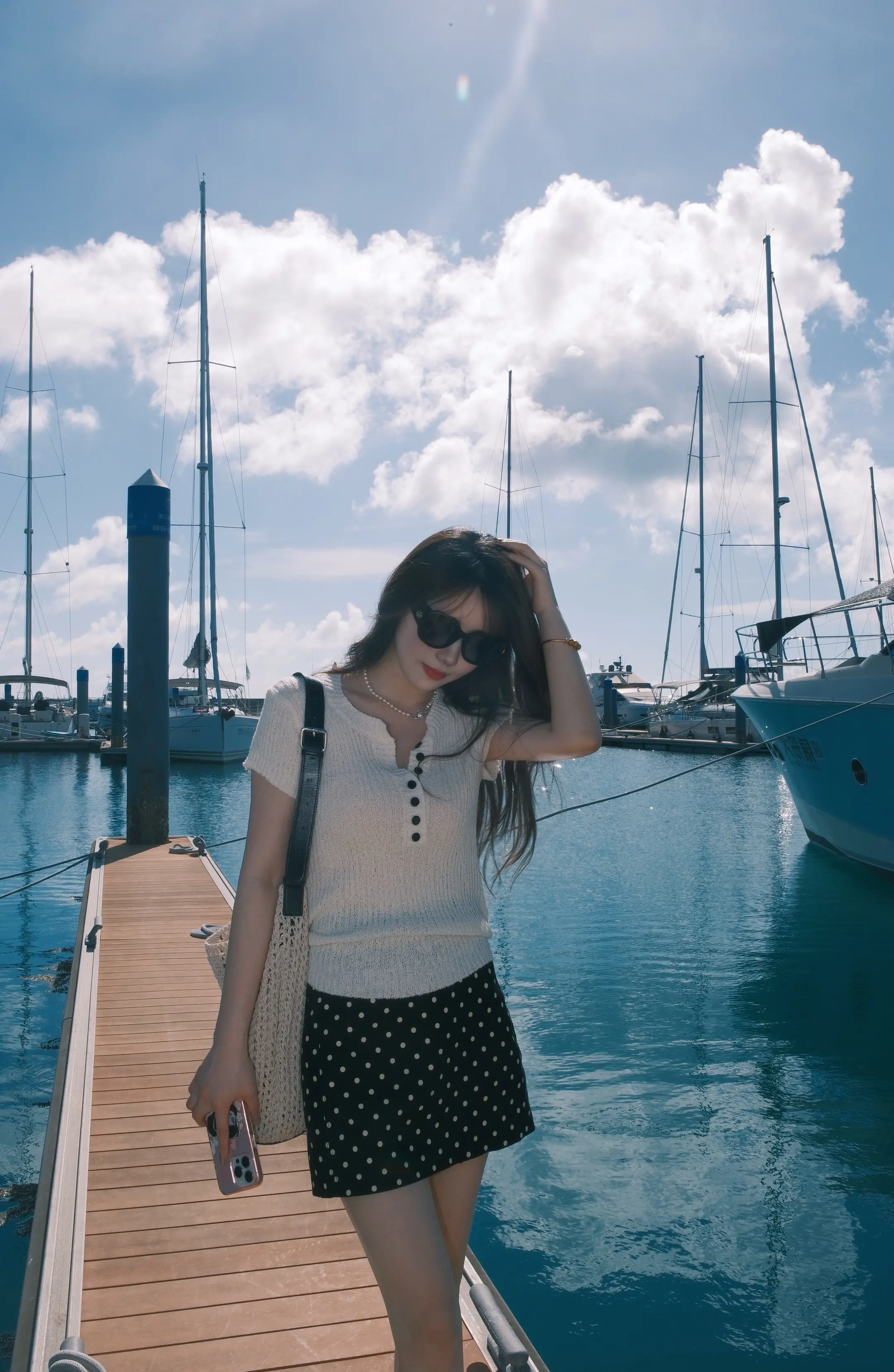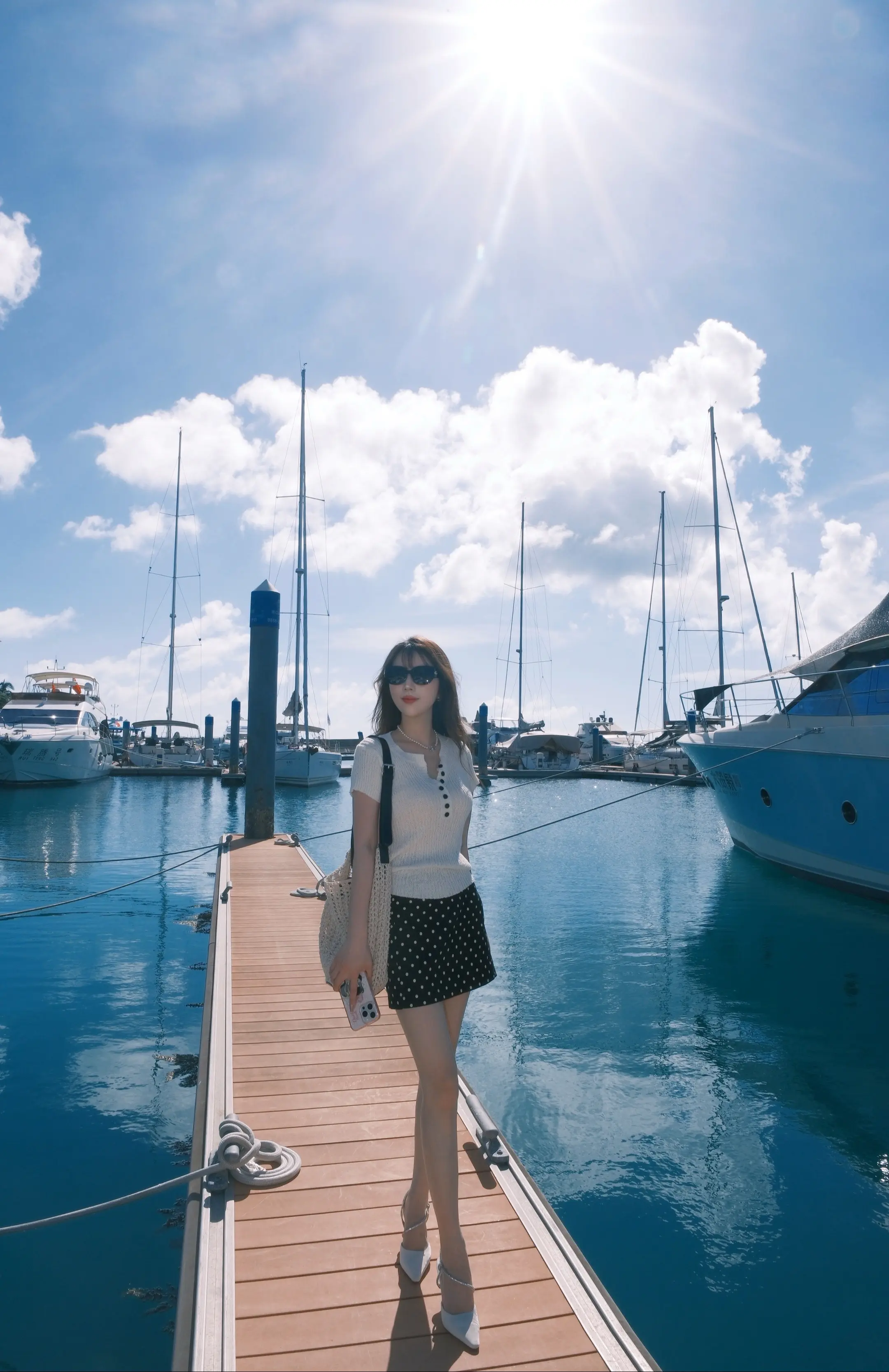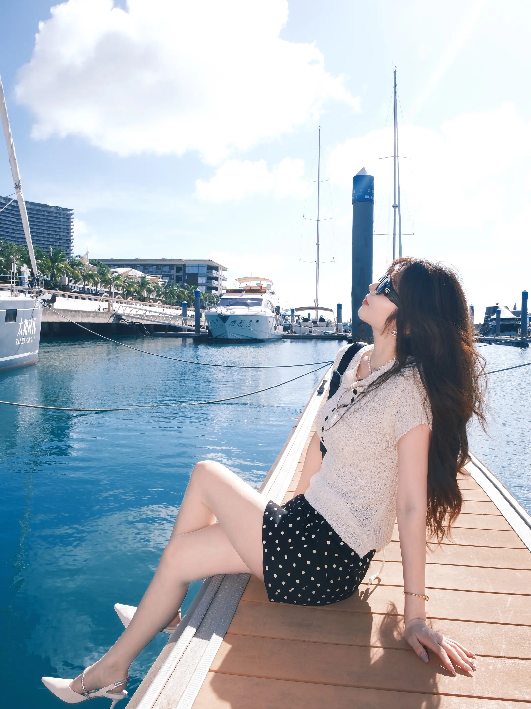 和大海蓝天拍照。