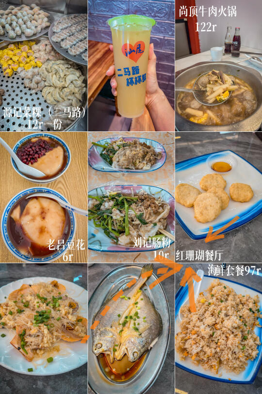 ▪️选择住二马路因为食住行都方便,如果3天+躺平度假,可以选金町湾。二马路必试源记🌟菜粿,肉饺好食,第①次建议混拼12r。🥤杯杯鲜要试,百香果黑加仑好喝。肠粉建议刘记👍10r,位置有点偏,味道服务体验感比某木好100倍‼️老吕豆花不在二马路,步行约800米,✨✨姜汁豆花6r滑到让你无法忘记,喳咋也是吃哭~