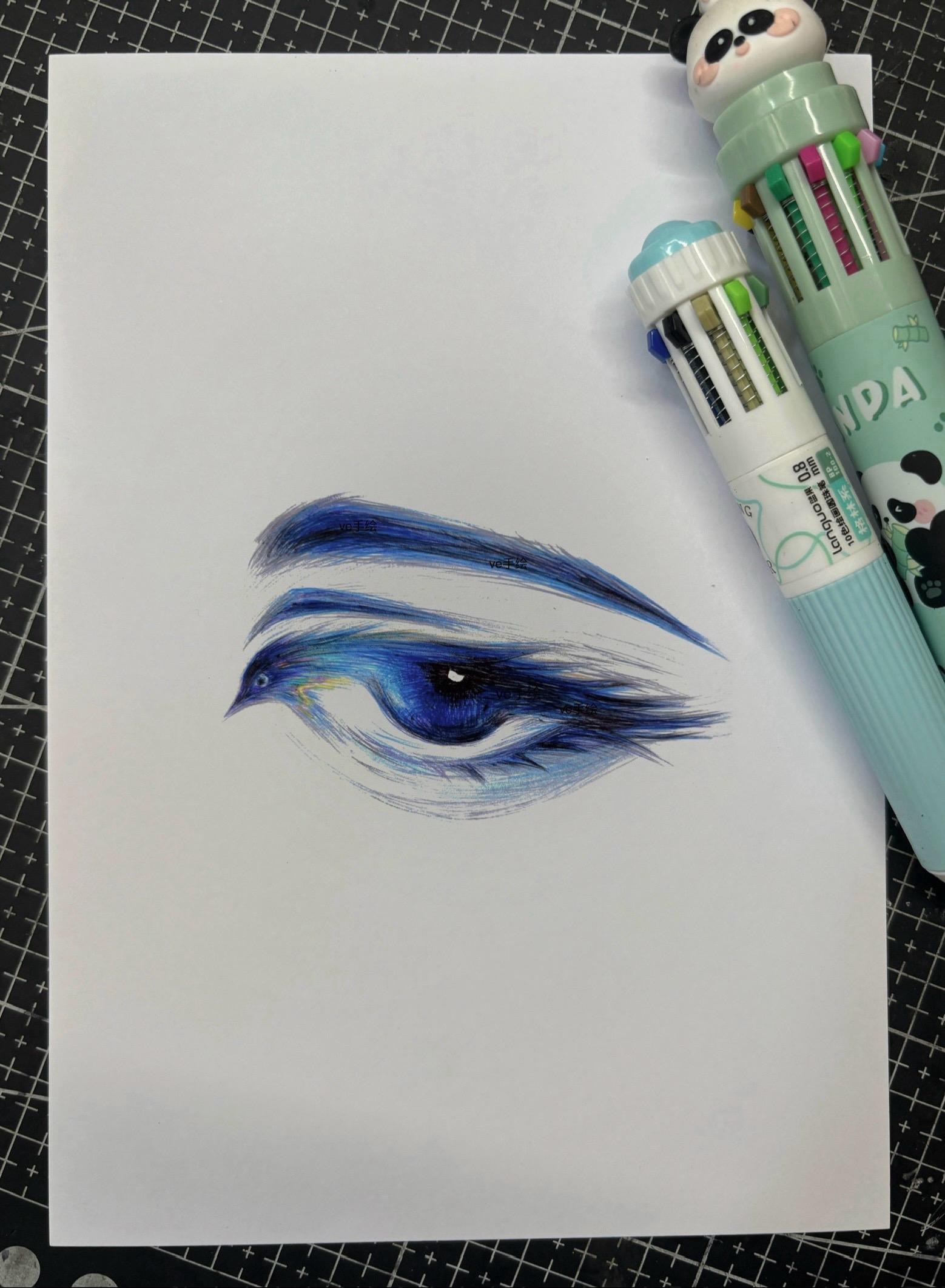 他说,爱人的眼睛是一只蓝鸟。圆珠笔 临摹 阀直