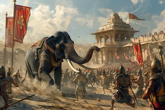 受孩子喝热粥的启发,采取“由外而内”的战术,先蚕食外围,再攻中央。公元前321年,在恒河流域决战中击败难陀王朝,建立孔雀王朝,定都华氏城,时年约25岁。