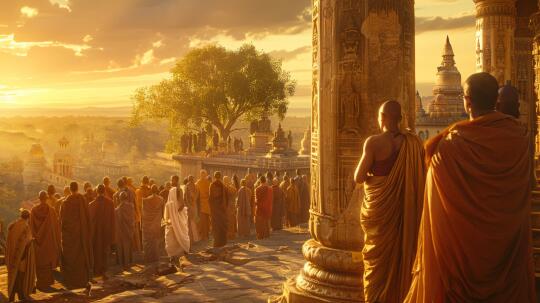 阿育王皈依佛教后,推动佛教第三次结集(公元前250年),派遣使者(如王子摩哂纳)向锡兰、缅甸等地传教,并在铭文中强调宽容与非暴力。“大法”超越佛教,倡导社会责任感、人道主义及宗教宽容(如禁止诋毁他人信仰),旨在凝聚多元帝国。