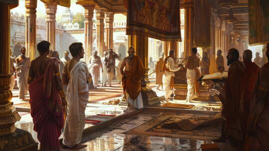 阿育王去世(公元前232年)后,孔雀王朝迅速分裂,50年内帝国崩溃,反映其统治高度依赖个人权威与“大法”理念的凝聚力。