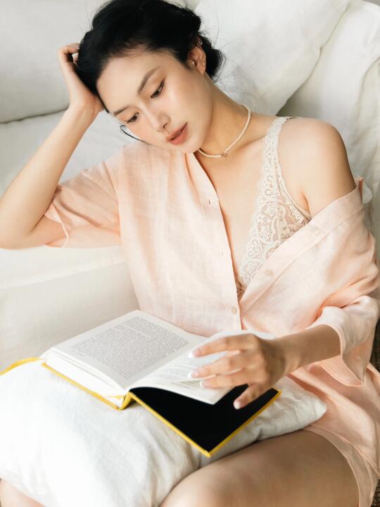 偶尔也会在二楼的落地窗看看书发发呆📖低头瞥见Elena精致的蕾丝花边,连发呆都多了份仪式感!夏天怎么能少得了亚麻呢?Intimissimi的居家服也是我的最爱!别在意那些小褶子,那是我藏在缝隙里的慵懒、一些关于舒适浪漫的终极答案~🛋️