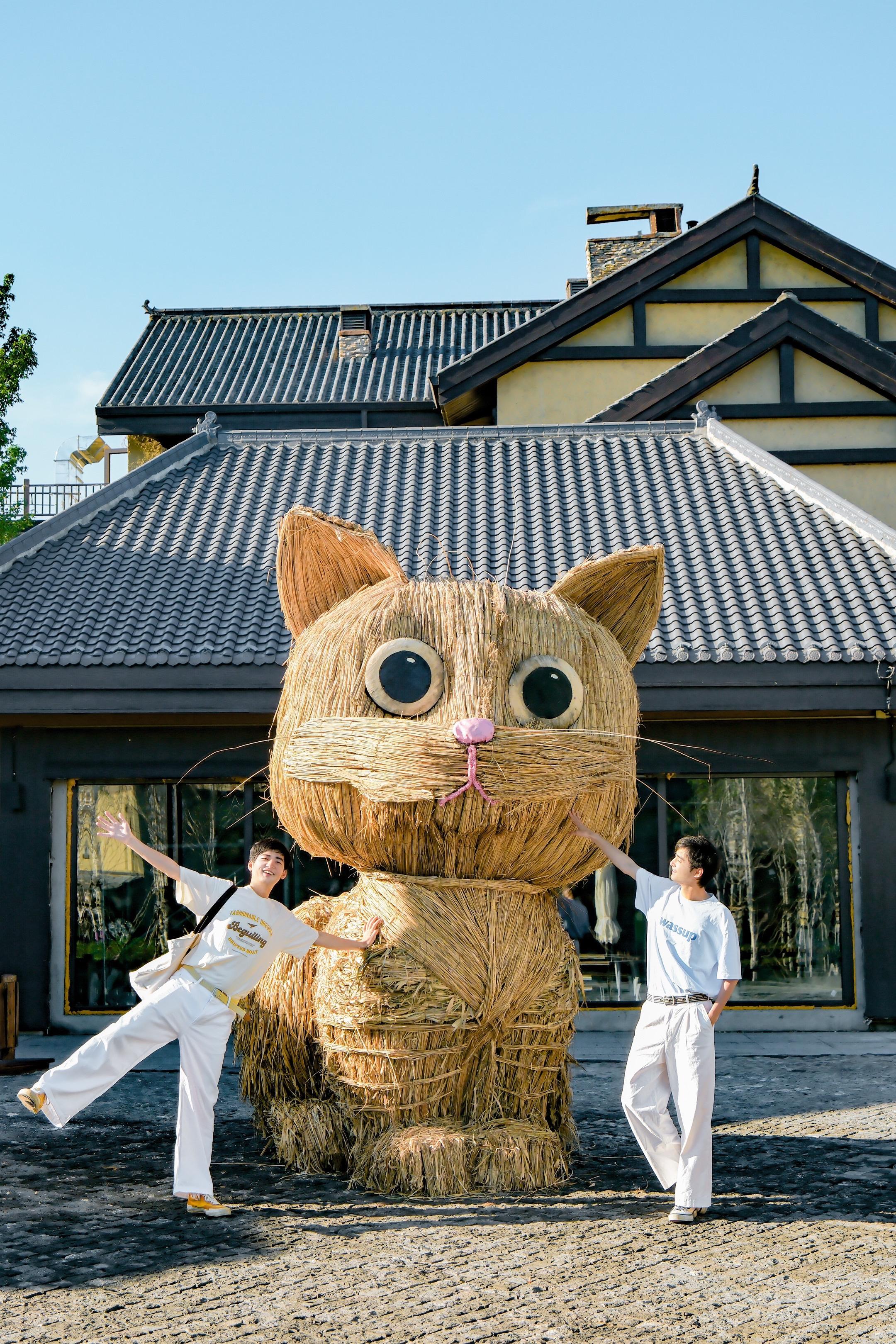 楼梯旁边就有个草堆做的巨型猫咪,这里几乎每家