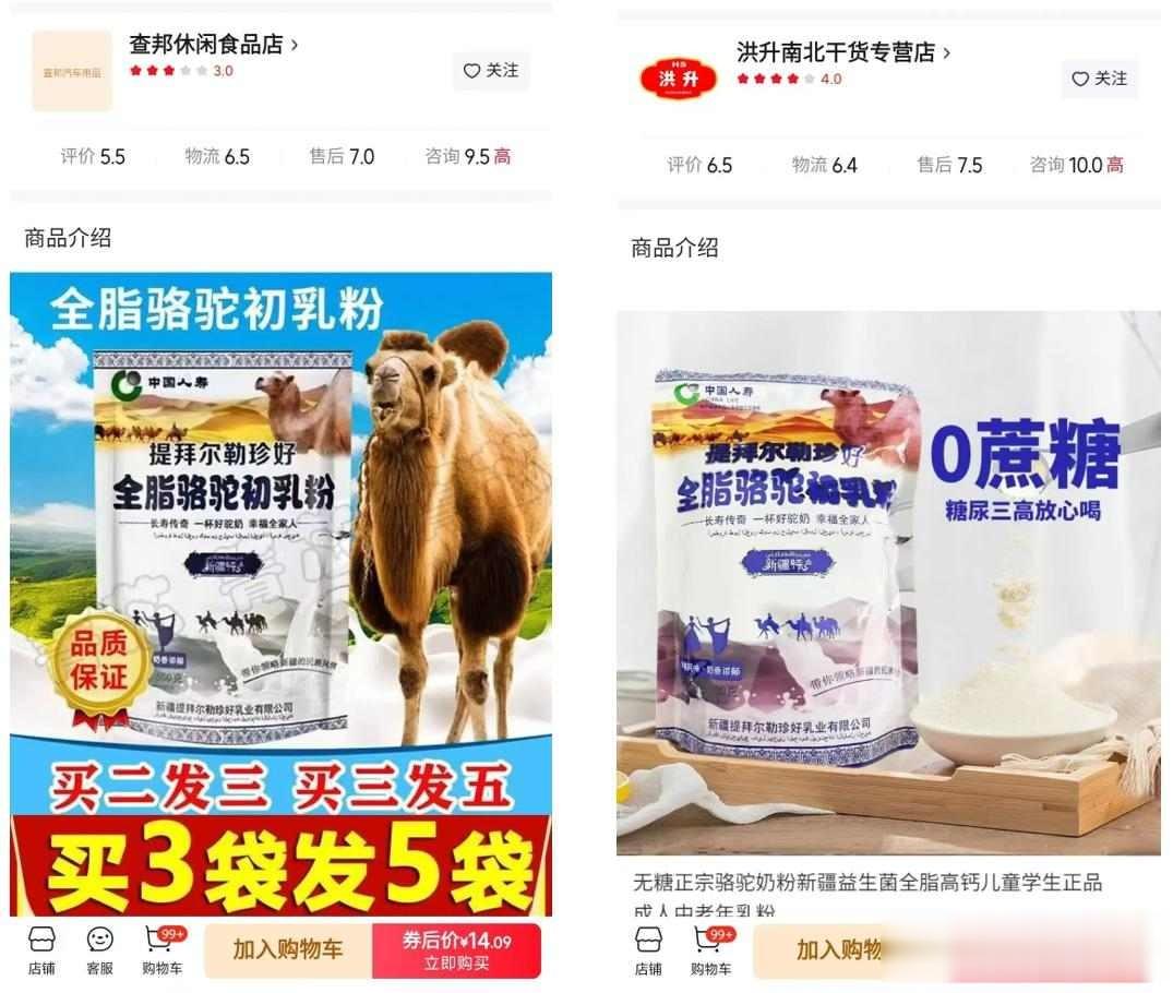 去年十月,老程的父亲从楼下小店买回五袋驼奶粉,包装上赫然印着“中国人寿承保”,老人一眼就信了,满心以为这是能补身体的“救命奶”。可老程多留了个心眼,一查才发现,奶粉标注的新疆提拜尔勒珍好乳业,根本就是个空壳公司,新疆市场监管局早在2022年就公开公示过,这家所谓的乳业,就是用植物粉冒充驼奶粉,彻头彻尾的假货。