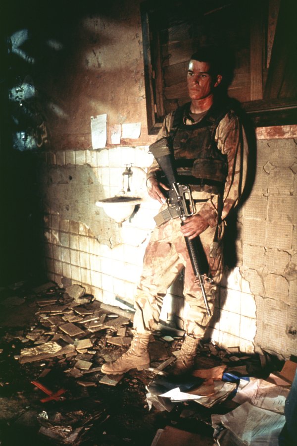 片子讲了啥?故事背景是1993年的索马里,内战打得天昏地暗,美军想插手抓个军阀头子艾迪德(Mohamed Farrah Aidid),结果计划崩盘,两架黑鹰直升机被RPG干下来,特种部队和游骑兵被困在摩加迪沙街头,面对成千上万的武装民兵,展开了一场18小时的绝命突围。电影从头到尾就是一场硬仗,剧情简单粗暴:开干,挨揍,再干!没有太多文戏,就是让你肾上腺素飙升,感觉自己也端着枪在巷子里冲。